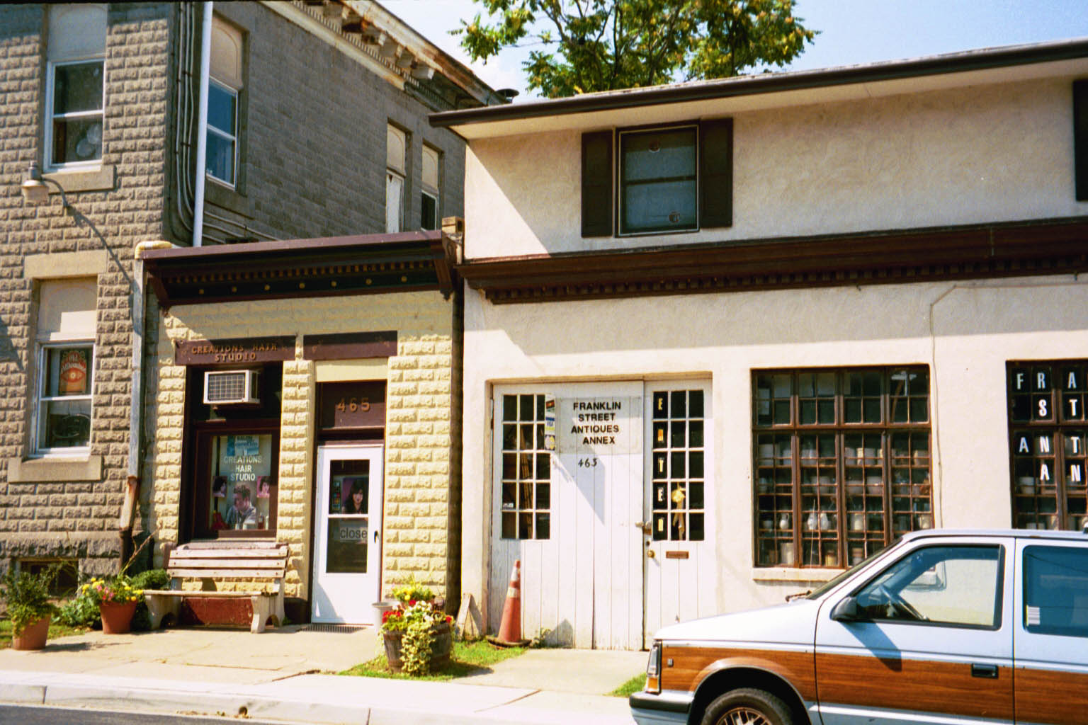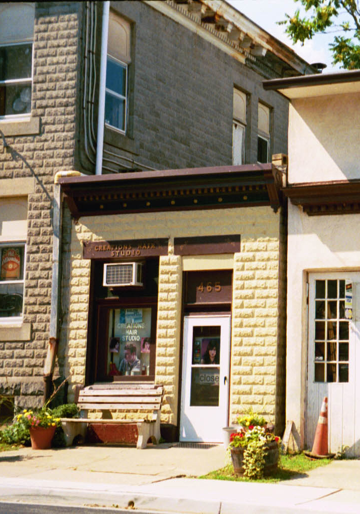 In 1991, 465 was the home of “The Duck Stops Here,” owned by Jimmie McMillan who sold just about anything related to ducks and decoys. In 1996, Bahoukas Collectibles was opened by George Wagner in this very small building. Four years later Bahoukas Antique Mall and Beer Museum moved to the larger quarters next door at 401 North Union Avenue, and in 2004 George Wagner bought the whole A.P. McCombs building and operated his beer museum on the second floor. At some point it was Angie’s Creations but Creations Hair Salon is here now and is in Harford County records as part of the 401 North Union Avenue property.