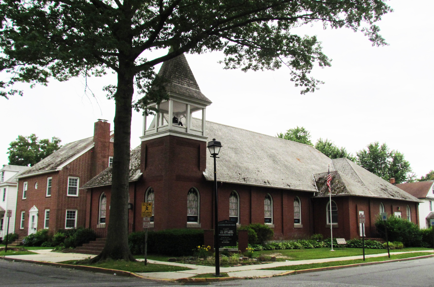 The cornerstone of this brick church was laid in 1910, and the first service was held December 25, 1910, with the Rev. Joseph D. Wilson, Dean of the Reformed Episcopal Seminary, leading the congregation in the Episcopal Christmas service. Leaders in organizing the church in 1910 were Walter T. Jackson and his wife, Nellie (who lived on Congress Avenue); Walter served as a vestryman until his death in 1938.