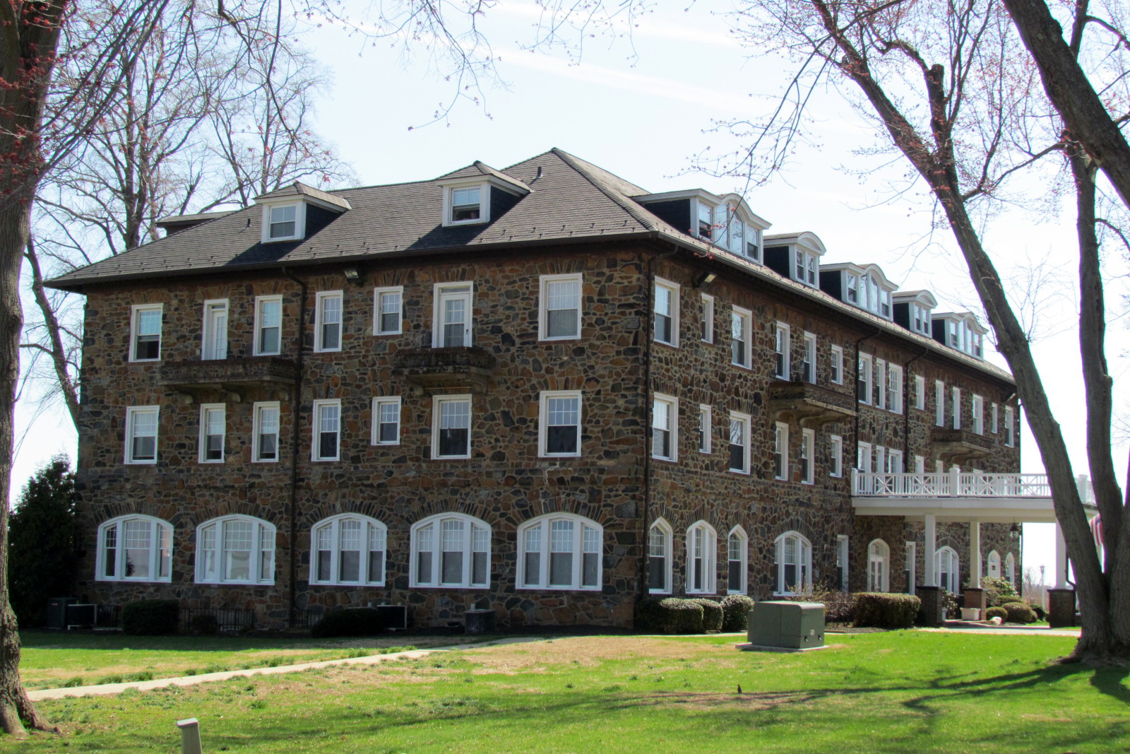Forced to close in 1934 following the Great Depression and a November 1929 fire that gutted the third and fourth floor and roof, as well as changes in laws for duck hunting, the Bayou and its furnishings were sold to two Baltimore attorneys for the Franciscan Sisters of the Catholic Church in 1935. They converted the building into a home for aged nuns under the new name, St. Francis Villa. They added the two-story tower on the north wing and a chapel. In 1953, the local Dr. Charles Foley, Sr. (1895-1957) and his family purchased the property and converted the building into rental apartments, called the Bayou Villa Apartments. Jerry Farro, Jr. held his wedding reception here in the ballroom in 1953.