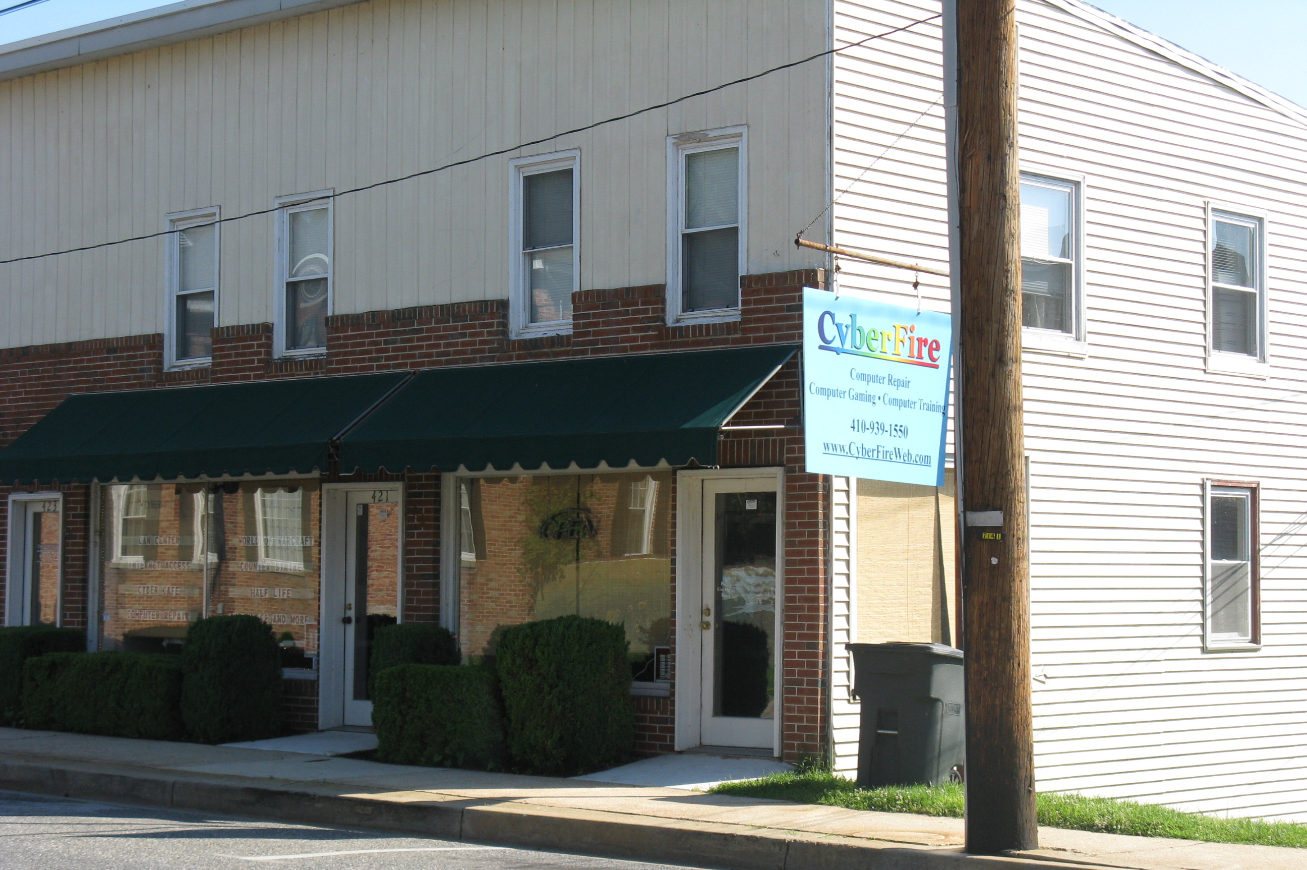 This property includes an open lot (2,021 sq ft) just south of #419-421 that previously had a small building where Sonny Fritsche had a TV repair shop. It was demolished in the late 1980s.