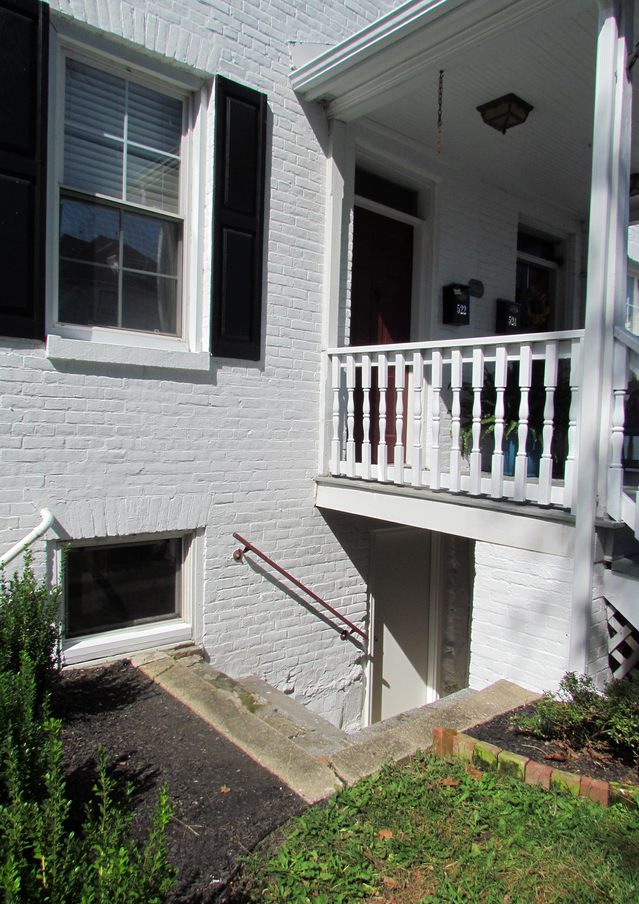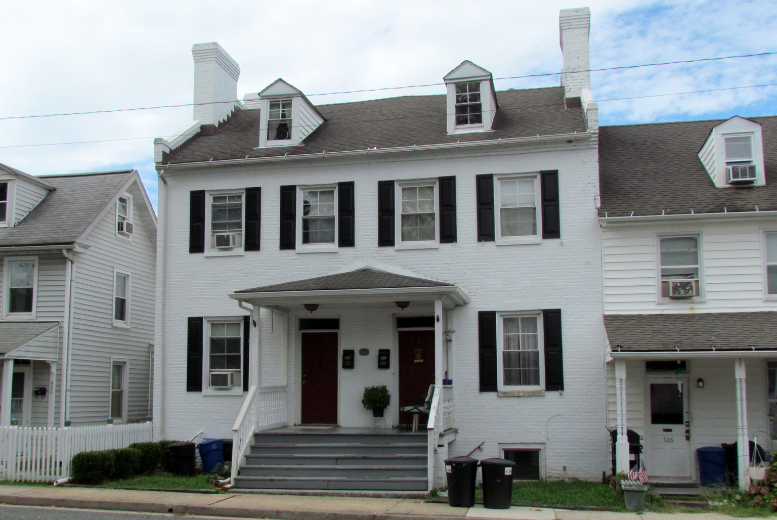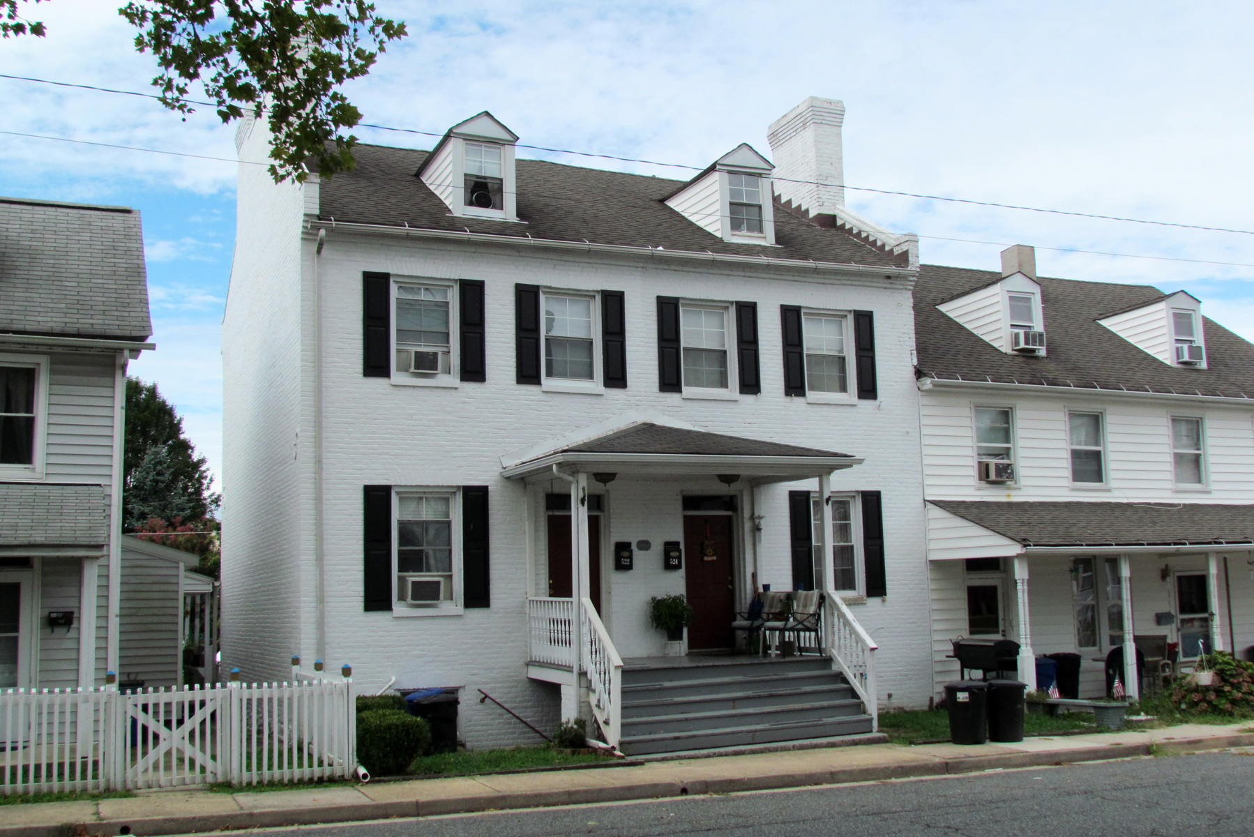 This house was named the Wollon House in The Maryland Inventory of Historic Properties (MIHP) because it was owned by J. Thomas Wollon in August 1976, when the inventory was written. Also worth noting is that because the house was painted dark red in the MIHP Inventory’s photo, it obviously was painted its current white color at a later date. The house appears to have always been owned by the same people until 2011 when Derek H. Schwartz and Joseph S. Zuramski,sold each side individually. The interiors of the houses have several original brick walls or fireplaces exposed.