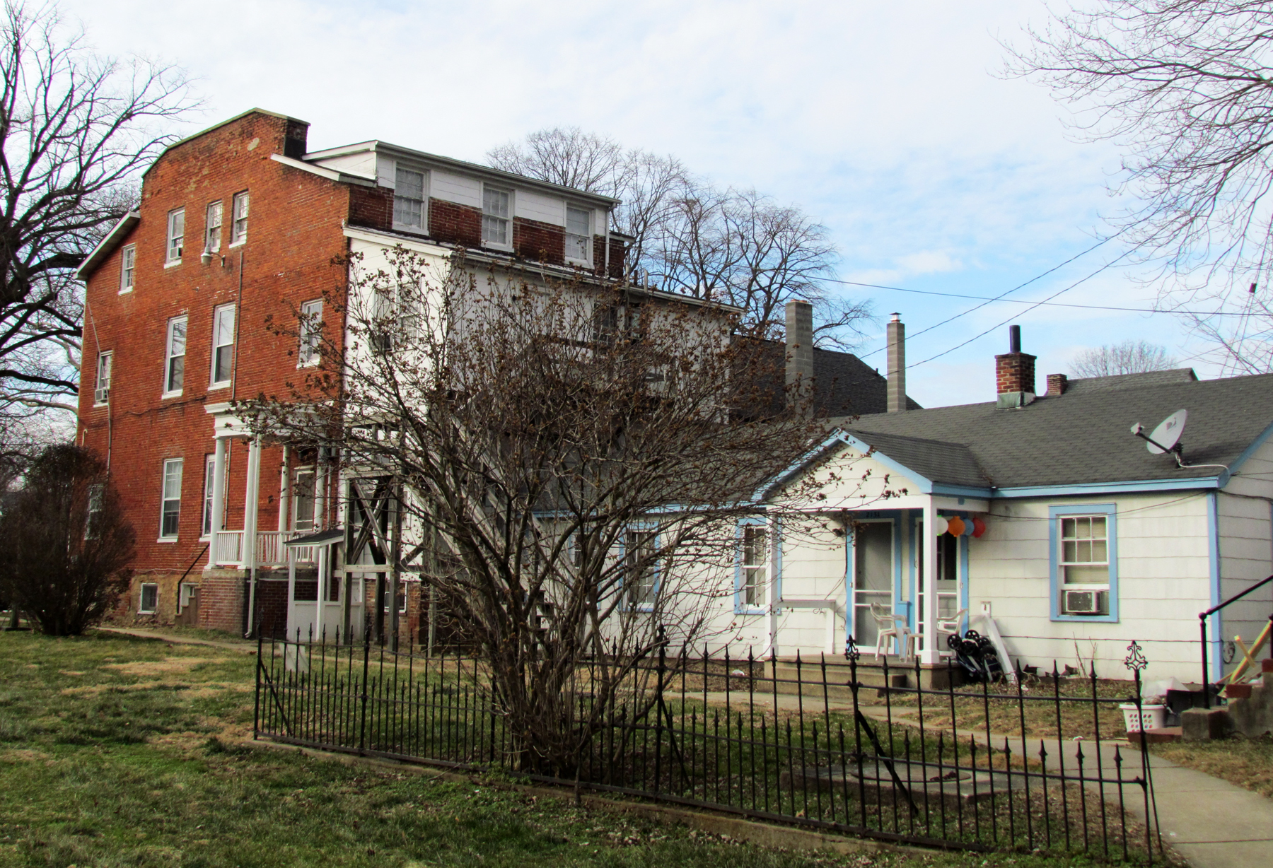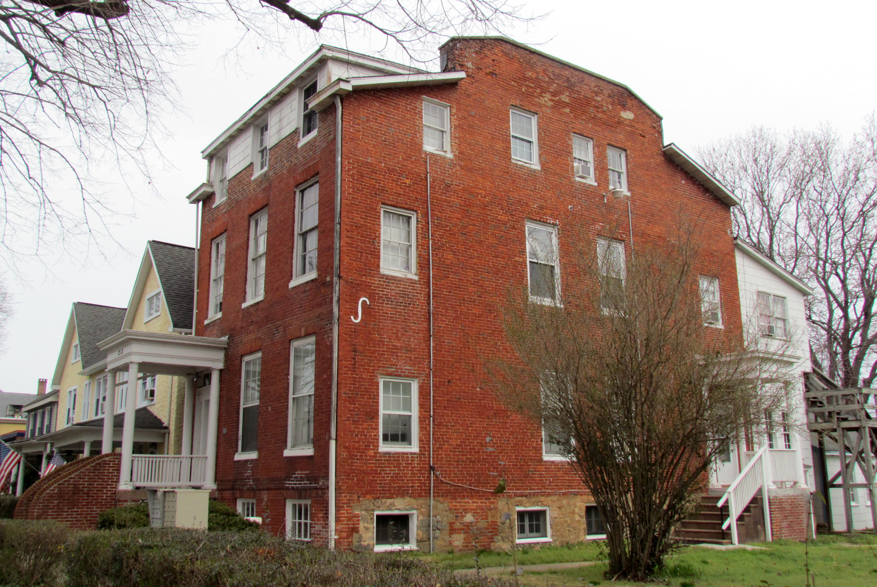 In 1865, Jacob and Anne Hoke sold this Hoke House to Lyttleton S. Cropper, who sold it the following year to Albert Davis. From then until 1933 as each owner died, disputes were taken to the Circuit Court and had to be resolved by Trustees selling the property. Albert Davis owned this until 1876 at which time Trustees sold this to Elizabeth Burke (the wife of William Goldsmith Burke). Although she died in 1895, it seems it had passed to her son, David Y. Burke but Elizabeth Sawyer challenged his ownership and Court Trustees sold the building at a public sale in 1920 to Edward T. Kirby. His son, Wilton G. Kirby, was challenged in Circuit Court by Mary G. West and Trustees ordered it sold again at public sale. When no adequate bid was received at that sale, it was later sold in private sale to James Wheeler Brown in 1928.