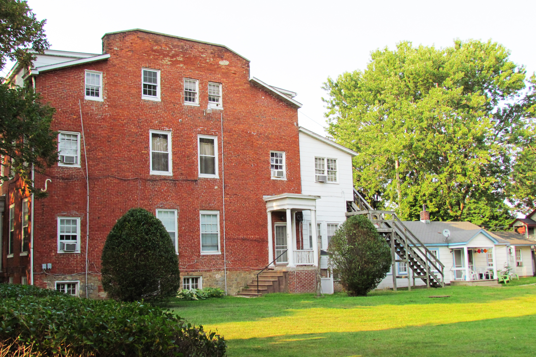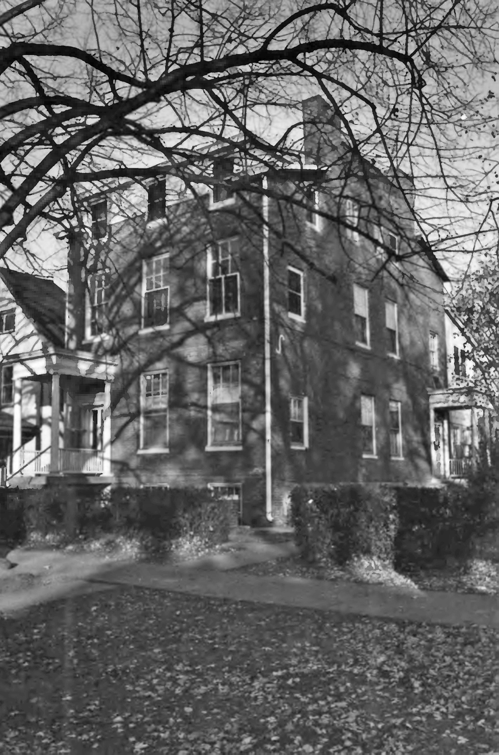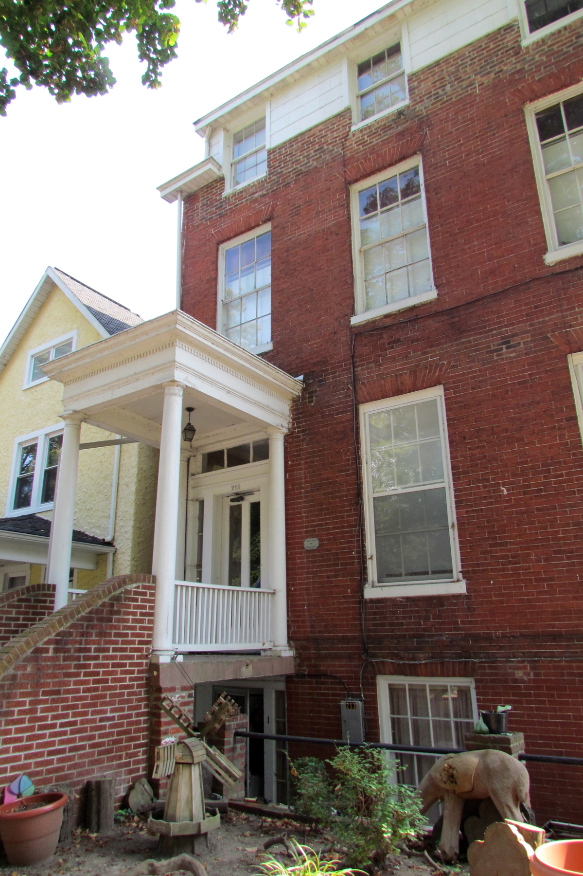 This Hoke House has several outbuildings at the rear that are also used for tenant housing. One of them resembles a converted two-story carriage house (which could have been the original carriage house). The house has a spacious yard on the south and at the rear while the north wall almost abuts the smaller house next to it.