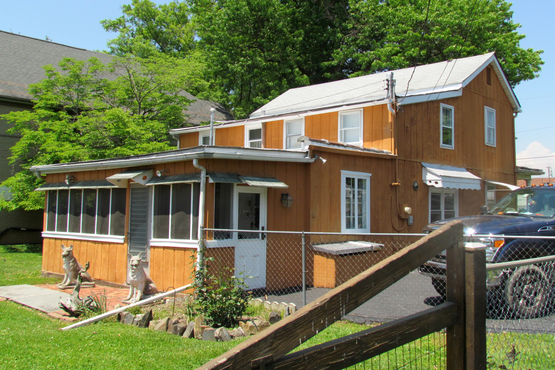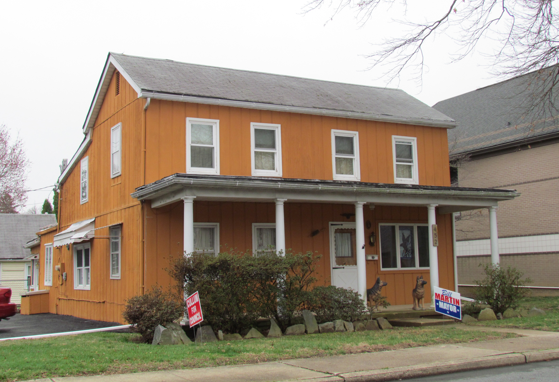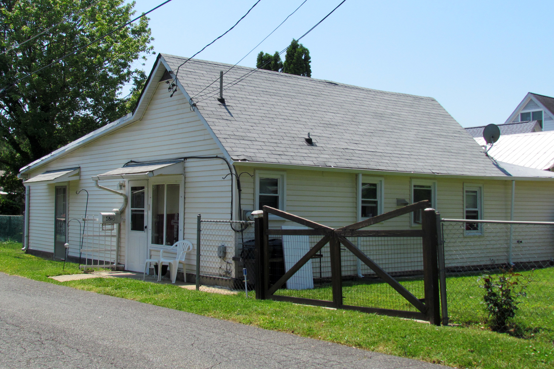 The front entrance to this two-story home faces Alliance Street, with a side entrance on Lodge Lane. Behind this house (facing Lodge Lane) is a one-story building that was the old “detached garage,” recreated many years ago as a self-contained apartment home with “452R Alliance Street” as the address.