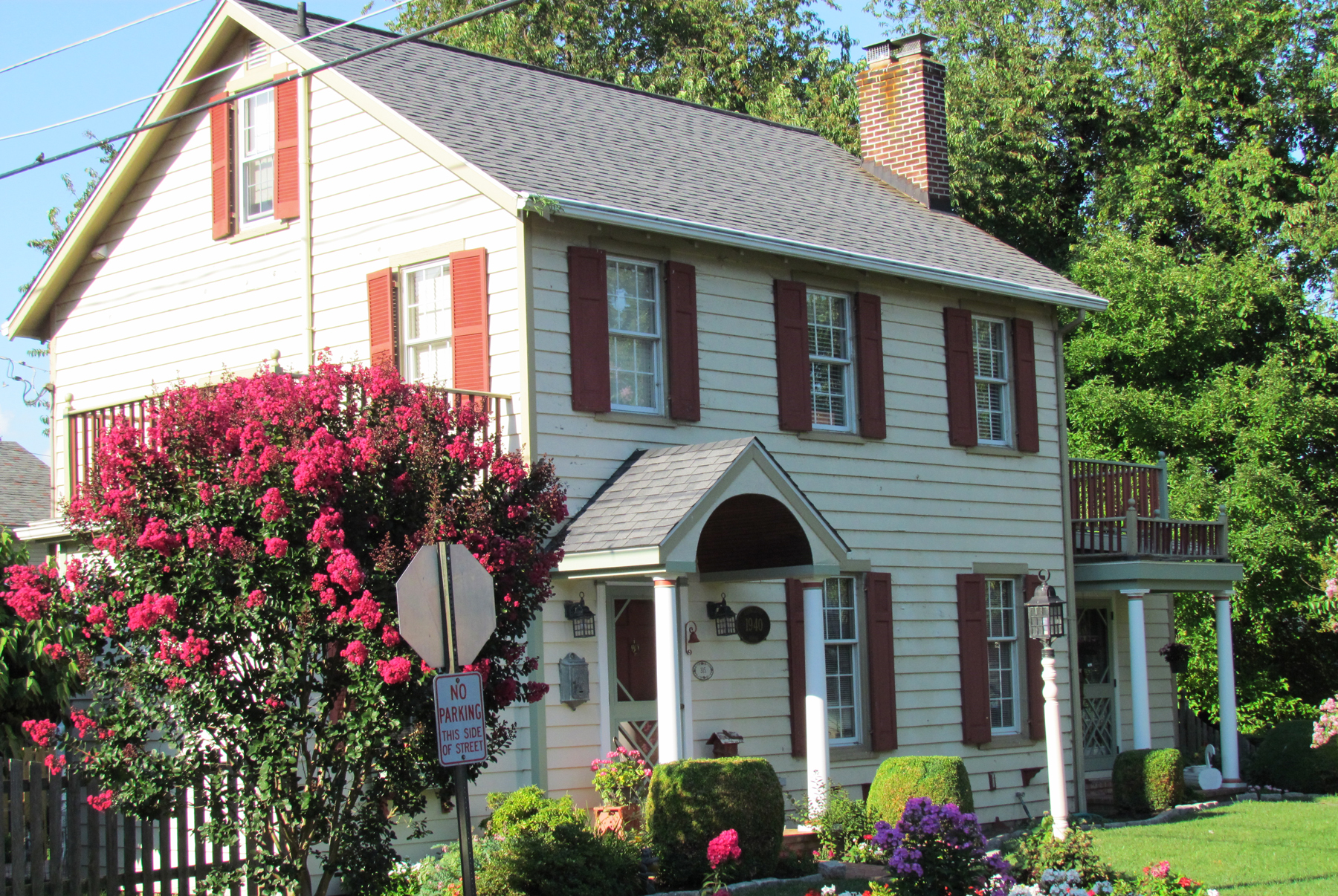 Gloria Cannizzaro opened her home to the 2001 Annual Candlelight Tour. Ivory walls and white trim were in the living room, as well as a painted brick fireplace. A screened porch was enclosed as a TV and family area and it retained its bead and board ceiling. A three-part window overlooked the sink in the kitchen. Three bedrooms were upstairs and the third bedroom opened to a deck. The home was furnished primarily with items inherited from Gloria’s grandmother. Gloria Cannizzaro still owns and lives in the home and tends the garden. This property received an award from the Havre de Grace Historic Preservation Commission in 2010.