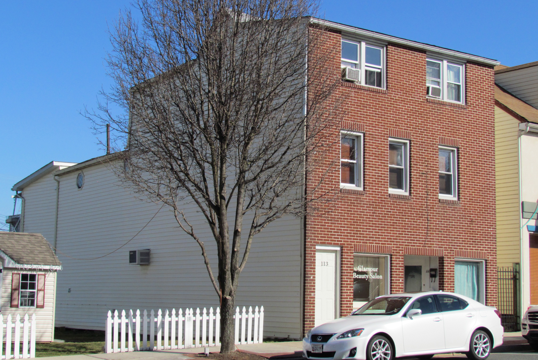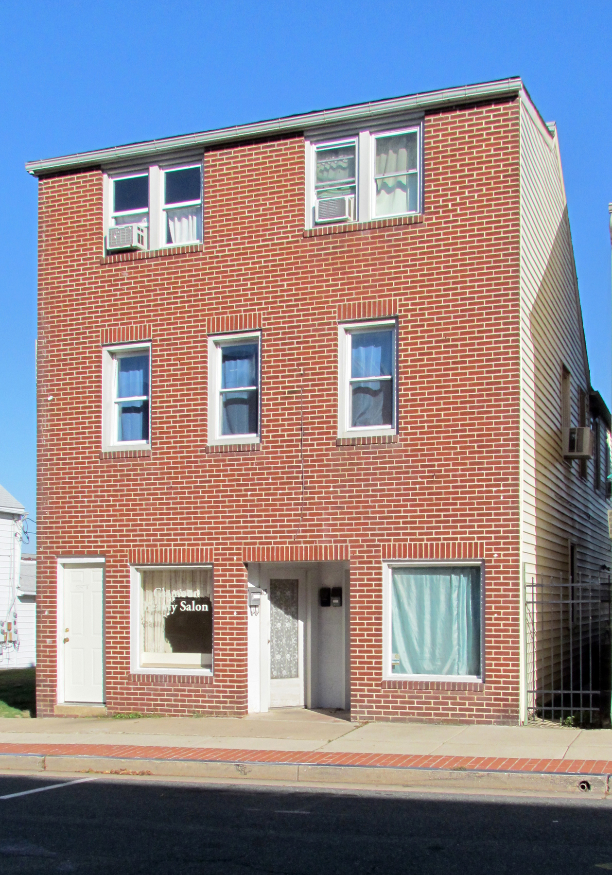 The first floor of the building is divided for two small stores. The south side used to be the very popular Music Box in the late 1940s. Glamour Beauty Salon operated on the left (north) side of the ground floor for many years. Anita Pizzano Higgins operated the Music Box while her sister, Dorothy Powell Duffield, ran the Glamour Beauty Salon. The upper floors, a large apartment, used to house Anita and Dorothy’s parents and family. Many young people of the 1970s remember gratefully that Anita Higgins would play the first few seconds of a record at the Music Box for them before they bought it. Sally Lieske Daigle feels that she and Lee Sirkis “drove the poor woman crazy asking her to play too many records.” Randall Lofland remembers his mother buying him the first record he ever owned—a 45—it was “Lady Madonna” by the Beatles. Rocci Fisch worked there after school and Danny Pascuzzi says he bought most of his 45 records there and still has them. They were $1 each. The Music Box closed in the late 1970s and this part of the first floor appears vacant.
