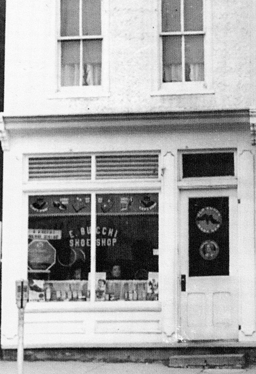 Elisa and Evaristo Bucchi bought this building in 1929 and ran a shoe shop here for many years. In a photo, the Bucchi Shoe Shop is seen around 1941.