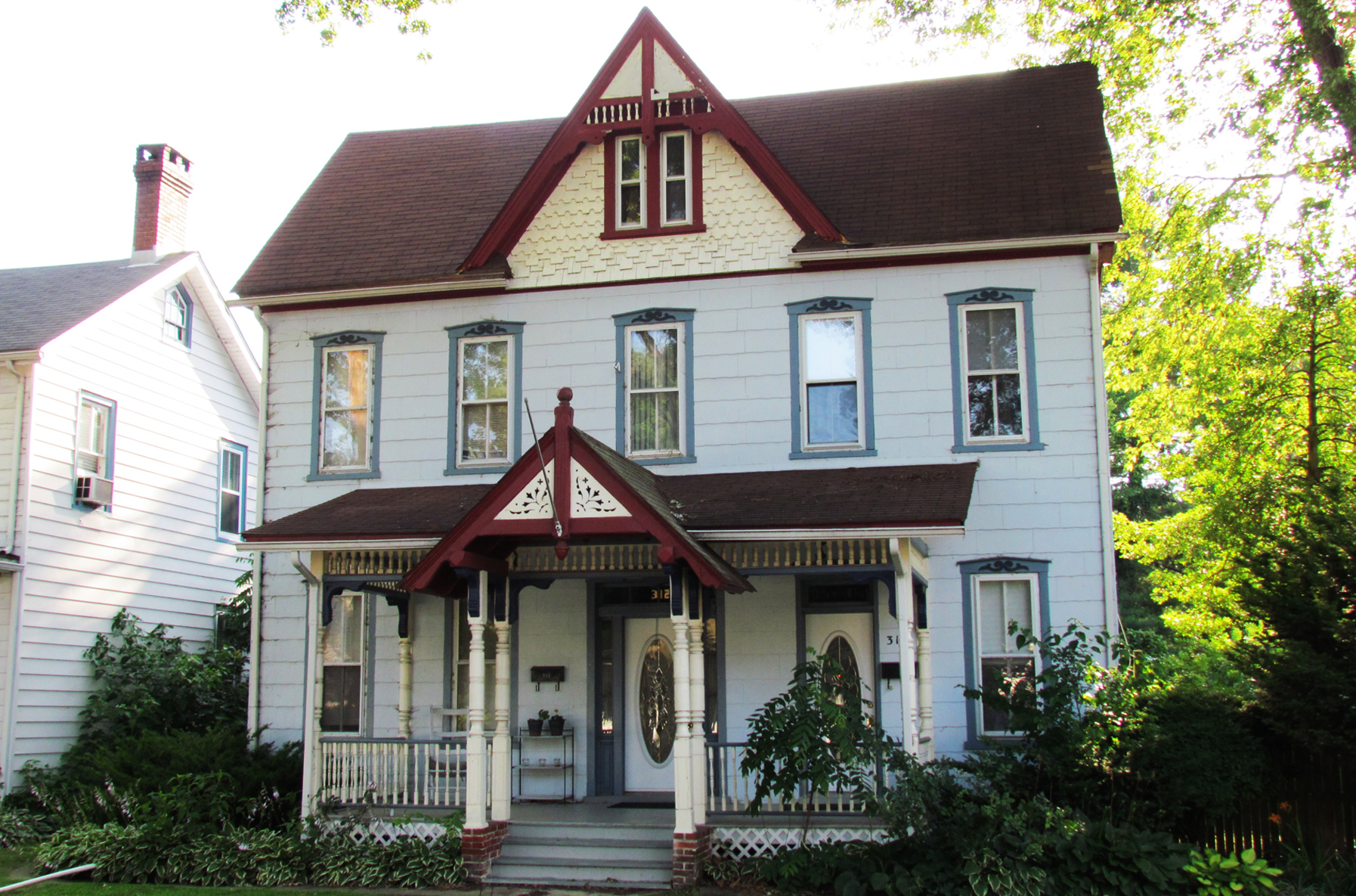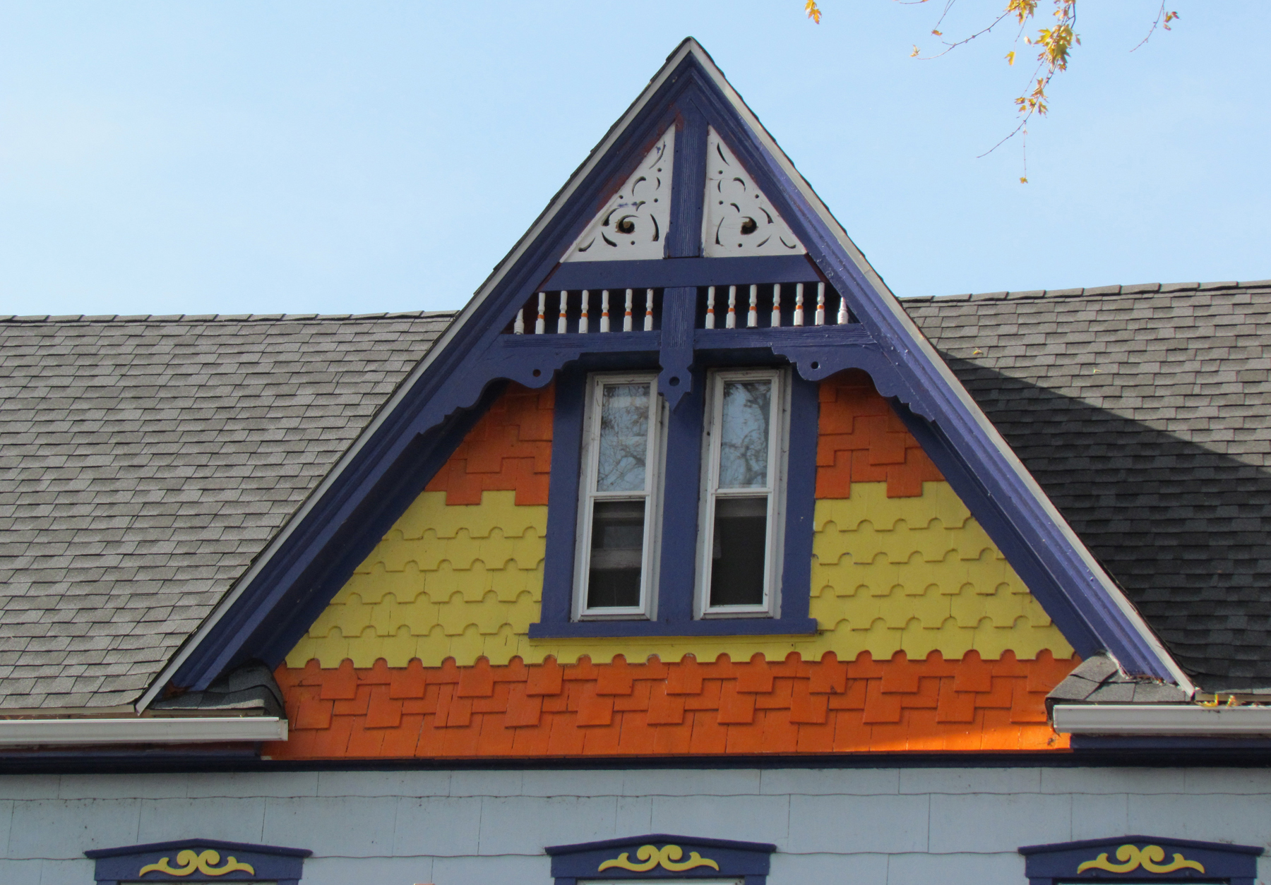 The MIHP Inventory referenced above notes that this house is one of the town’s best examples of “Eastlake design.” They describe the Eastlake style as one where use is made of machine-made ornaments that are added to existing structures as well as to newly built ones. They even point out the former existence of the nearby DuBois Saw Mill, which would have been convenient for making such “ornaments.” With the bright color contrasts of paint now, the Eastlake style of this home is even more obvious.