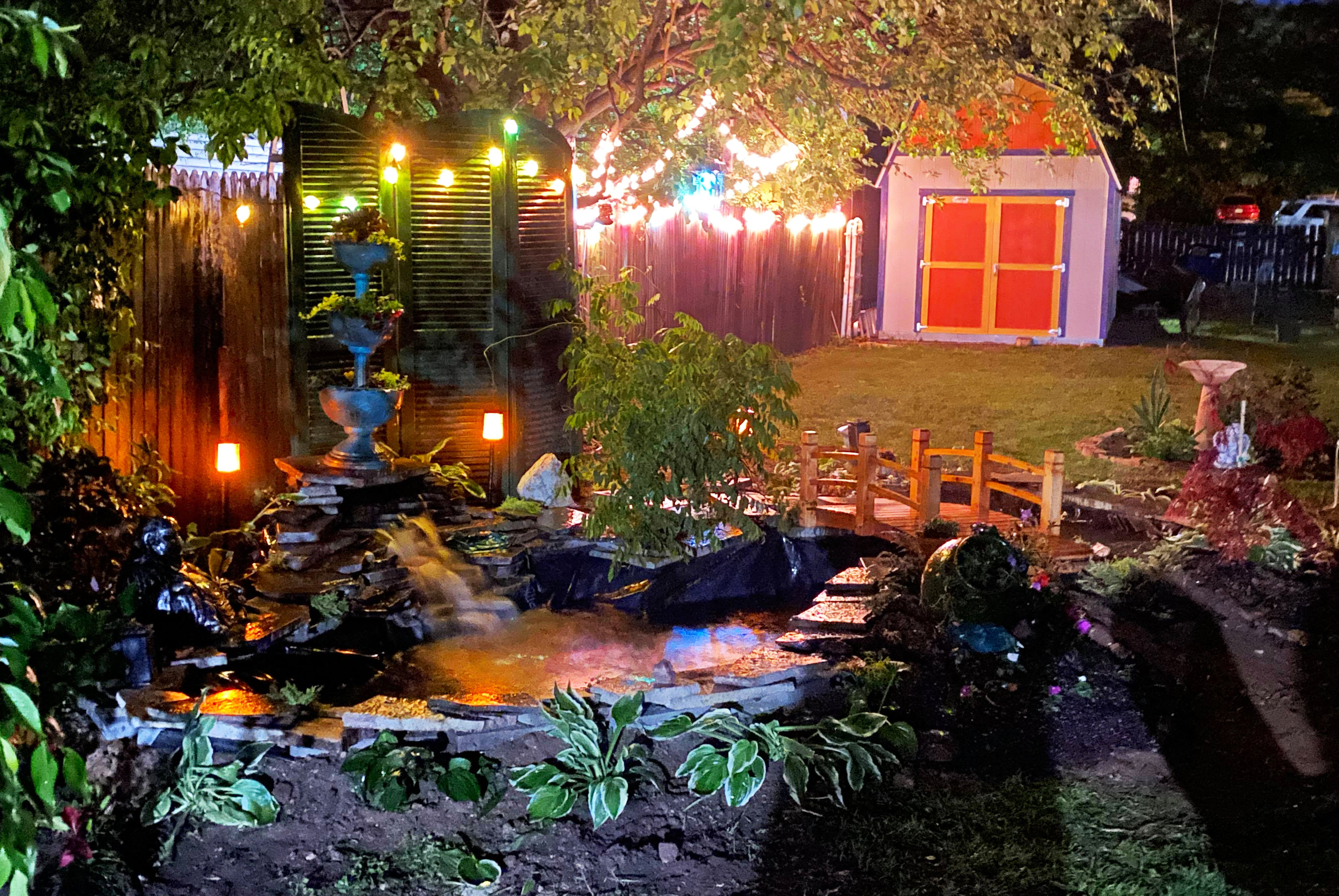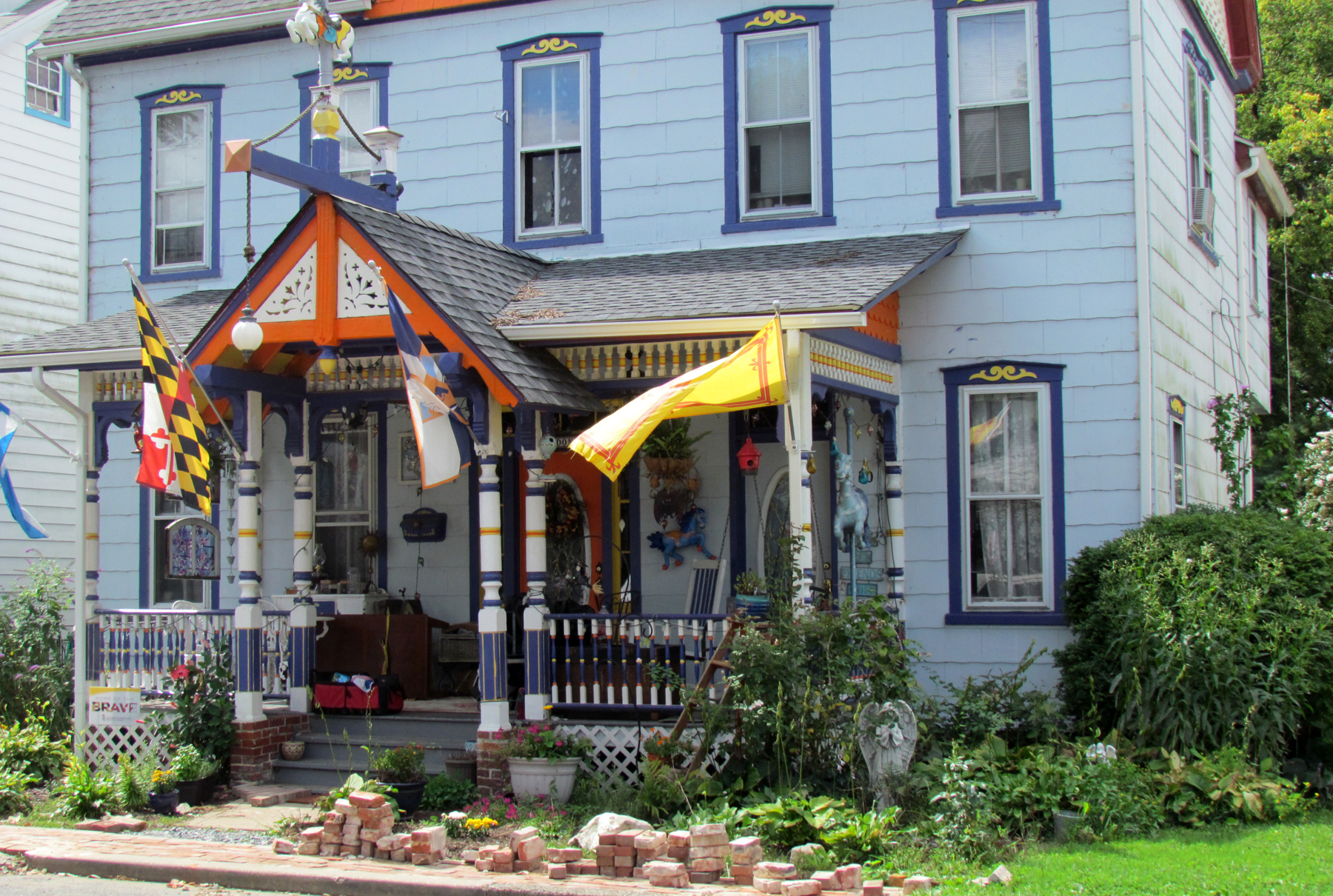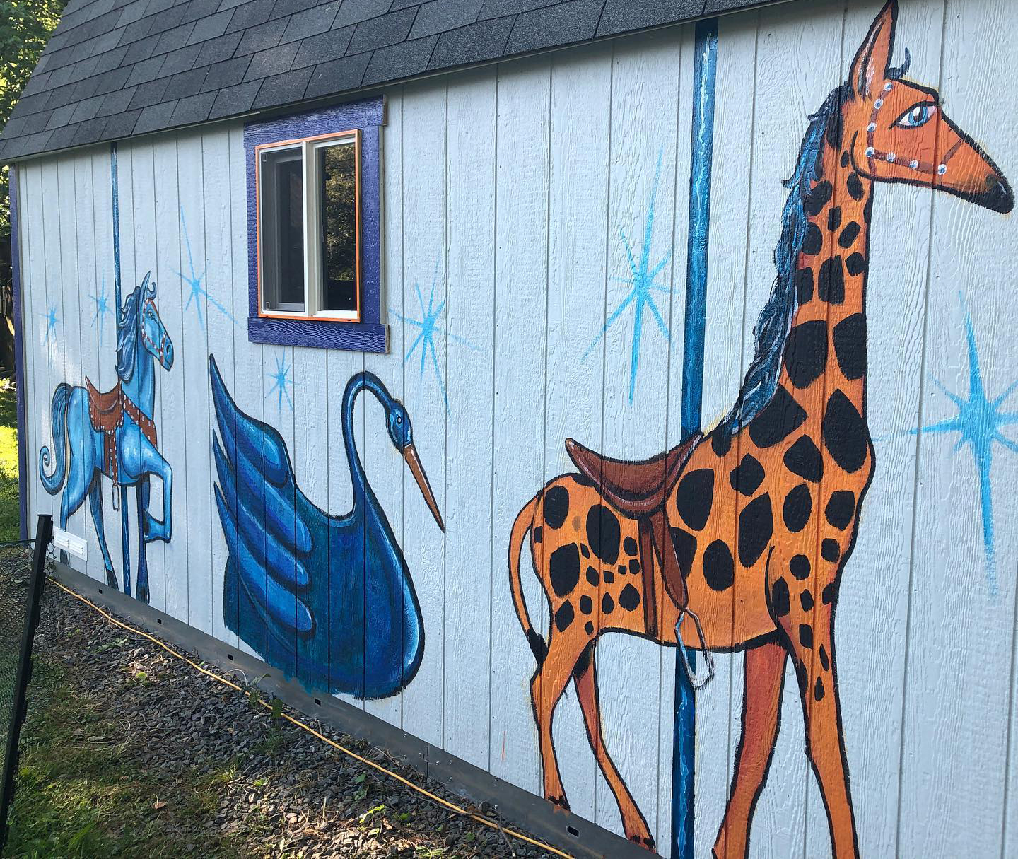 Nate and Katie Gordon are both members of the Rogue Swan Theatre Company in Havre de Grace, of which Katie is a founding director. They are a performing arts troupe that performs concerts, plays, and musicals in the Havre de Grace Opera House and other Harford County venues.The Gordons continue to put their own touches to this very colorful home. They used spare time during the pandemic to paint their rear shed with carousel animals to match the one that stands as a sentry over the front of their house. And they added a chicken area, veggie garden, and big fish pond in the rear.
