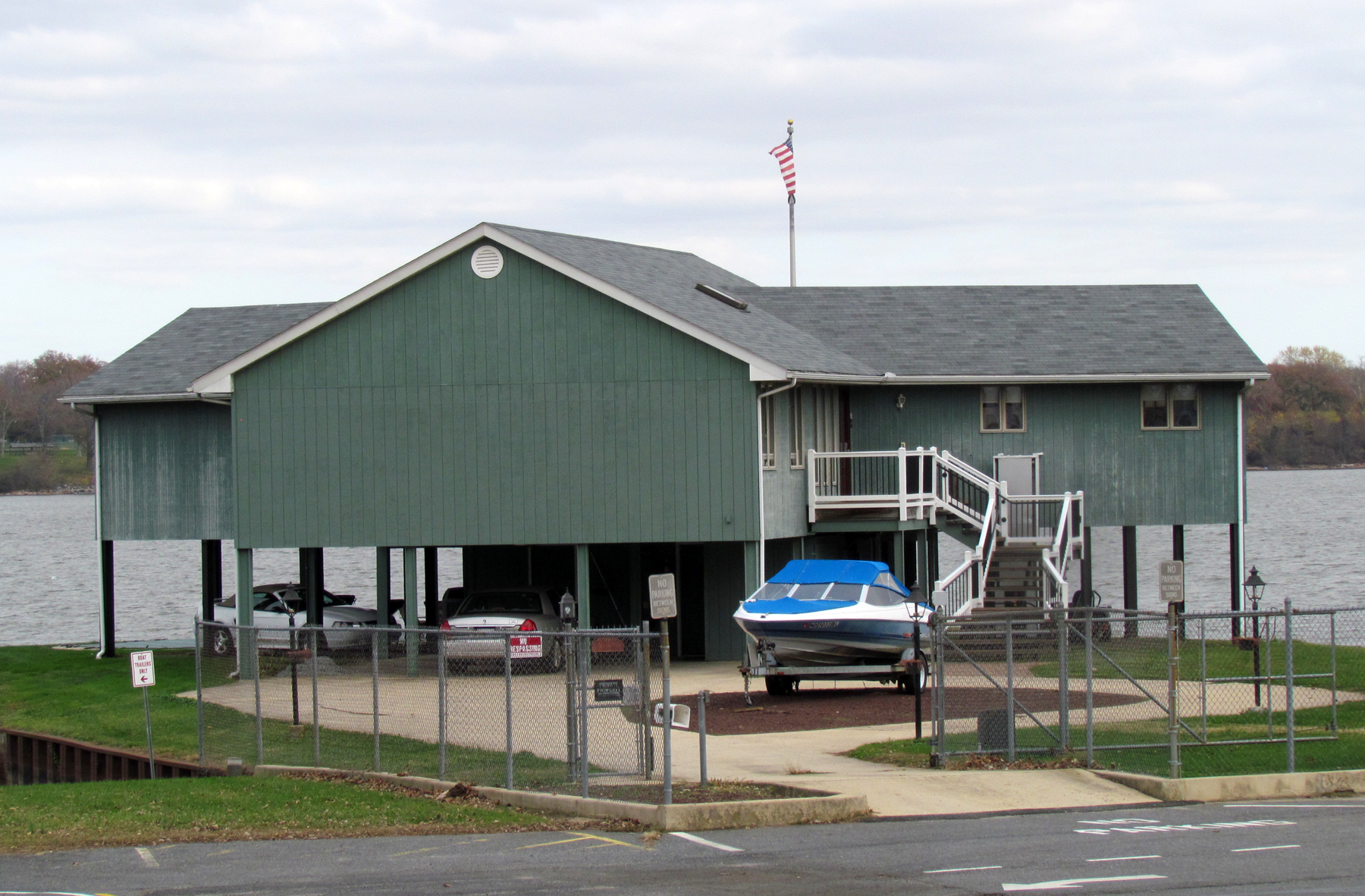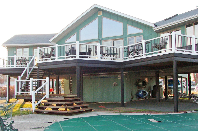 It was on this lot many years later, in 1992, that Robert Wood built his current home. This single family contemporary home of Robert and L. Jane Wood was opened to the 1993 Candlelight Tour, and described as follows: The stained cedar residence sits on stilts in the water of the Susquehanna River, behind the American Legion. Bob Wood built the home himself and also built the 64-foot sailboat (“Hummer”), then tied to the nearby slip. The house contains a living room with dramatic white walls, a cathedral ceiling and wooden beams. The mantel and woodwork are of pine, rich in color. A wall of glass doors on the river side opens to a full deck below, with a swimming pool surrounded by tasteful landscaping and a recreation area beneath the house.”