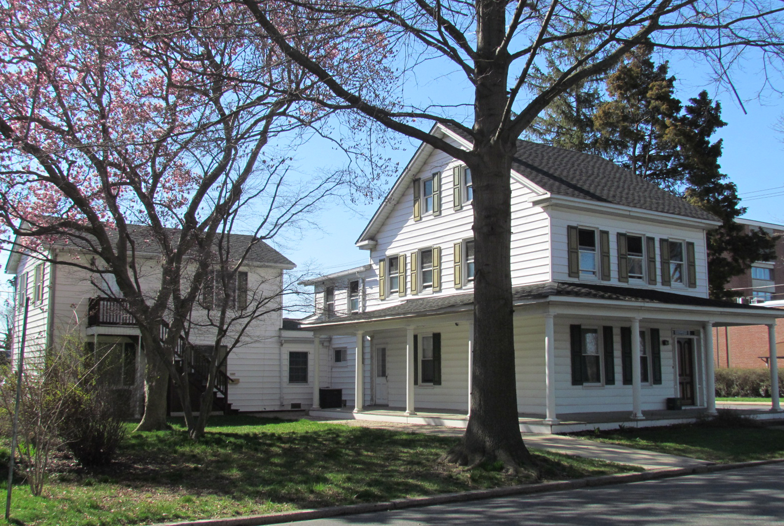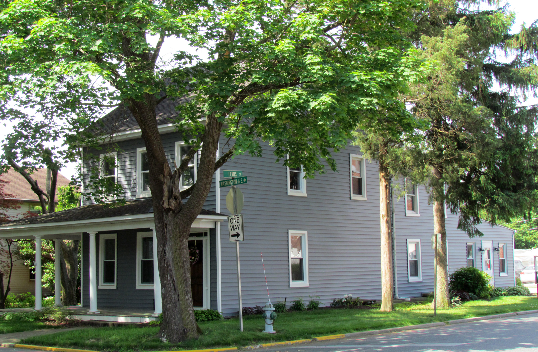 This property is on the southwest corner of Lewis and South Washington Streets. In 1916, this was the residence of Edgar C. Kelly, who began the Kelly Bottling Company in a building behind this house on Lewis Street. In the 1930s this house was owned by Carrie Fairland, who with 2 others incorporated the Kelly Bottling Company in 1937 when Edgar Kelly died. The bottling company had begun as The Whistle Bottling Company in 1907 behind Carrie’s property on Lewis Street. Carrie Fairland had a beautiful garden behind the house with a path going down to the bottling company, on the corner of Lodge Lane and Lewis Street. That garden has now been paved over as a parking lot as can be seen in photos.