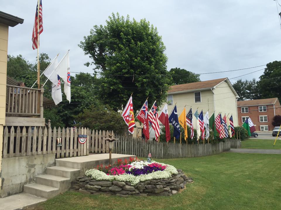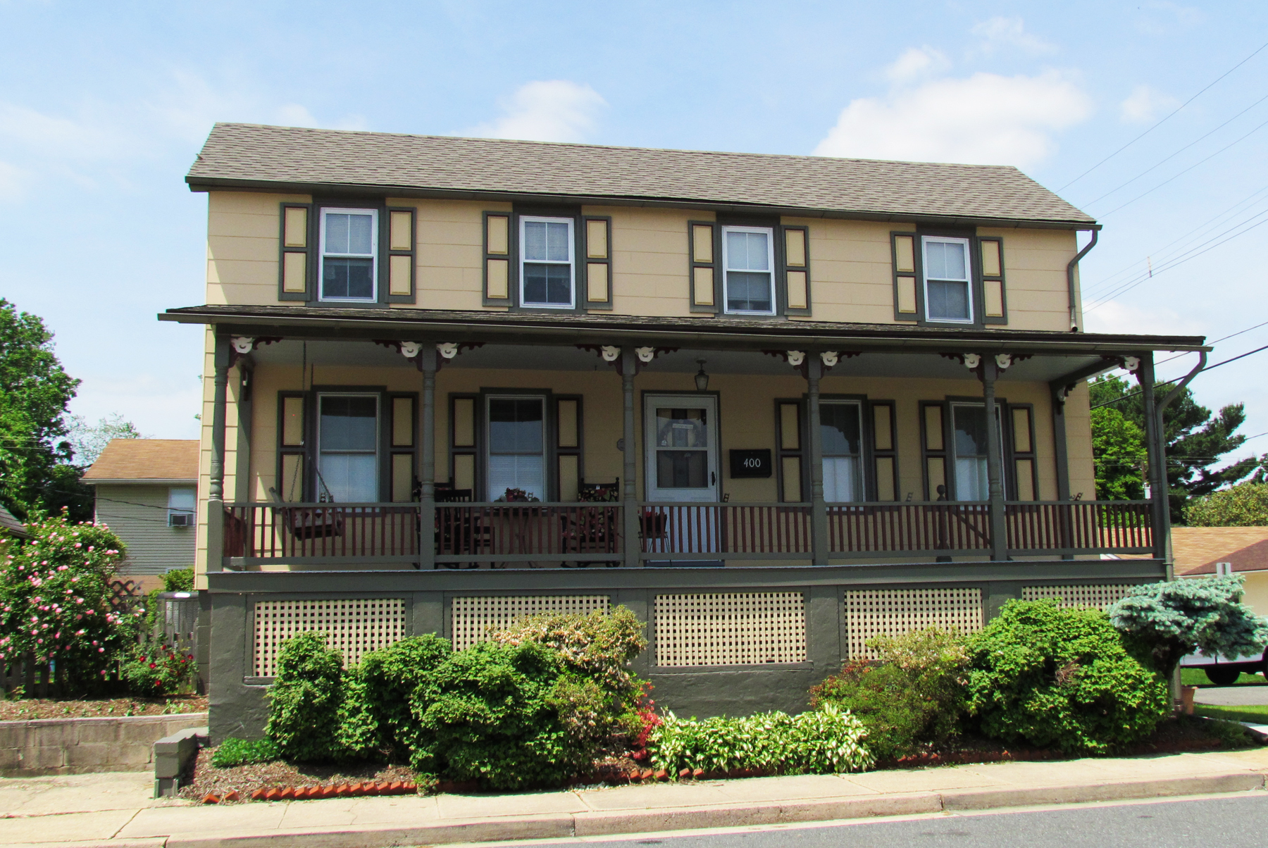 There is a small building (406 Market Street) just south of the main house that in the late 1950s became a carry-out restaurant called Alice’s Carry-Out Restaurant (earlier in time than Arlo Guthrie’s release). Alice McEwing (1910-1979) rented the space from George and Katherine Grieninger—being south of town where there were few other restaurants, Alice’s was popular for hot and cold subs, sodas, chips, and good hamburgers and did well. In 1966, Alice bought the whole property from the Grieningers and she owned it until she passed away in 1979. Alice may at one point have been married to Arthur McEwing (1910-1980).