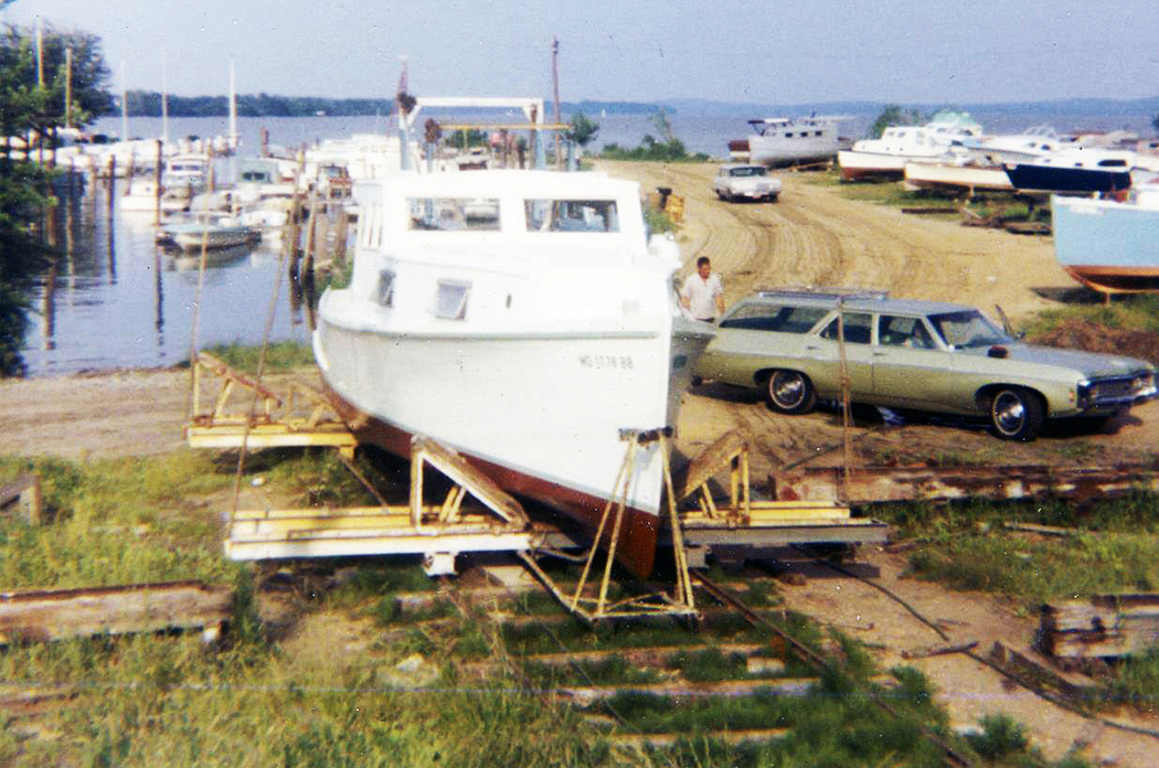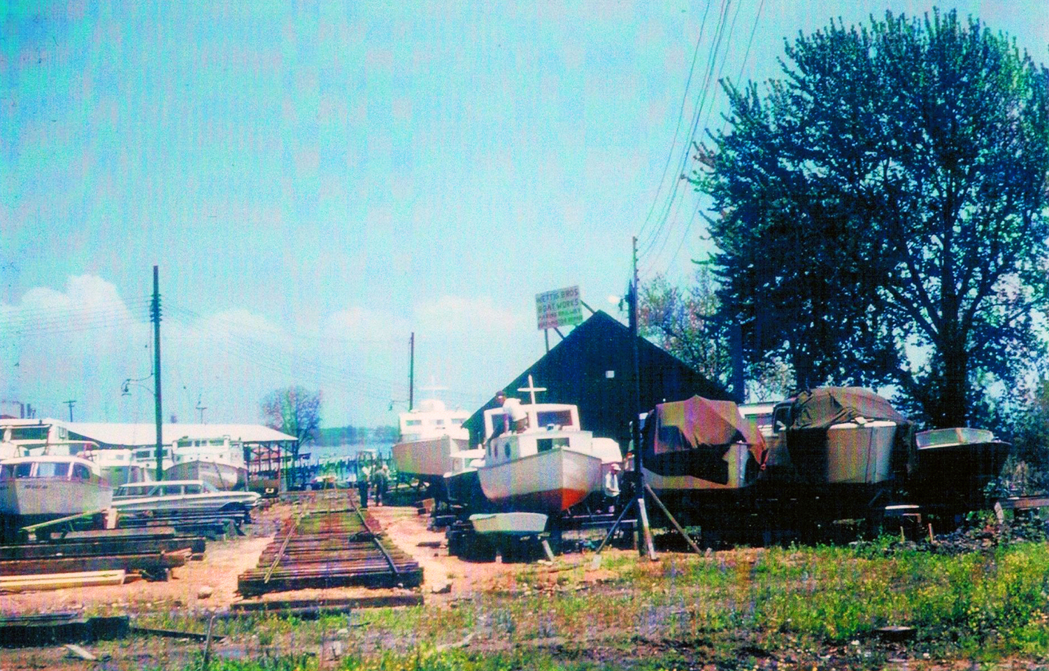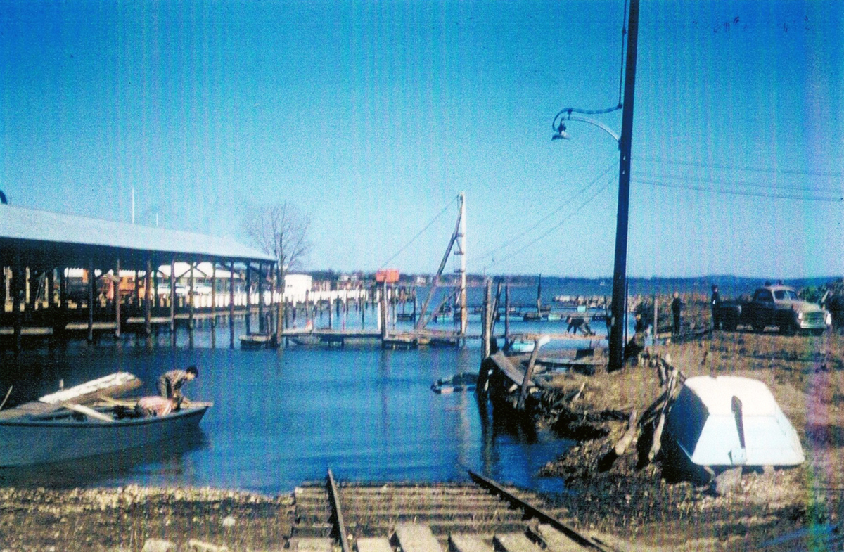 The boat on the rails in a photo belonged to William Schweers’ grandfather as they were getting ready to launch it in 1971. Diana Ramey Angelucci says her Dad had a 42-foot fishing boat there on which he would take kids out and throw them off into the water to teach them how to swim. And Rob Pennington says he pretty much grew up down there going bass fishing and sledding in winter.