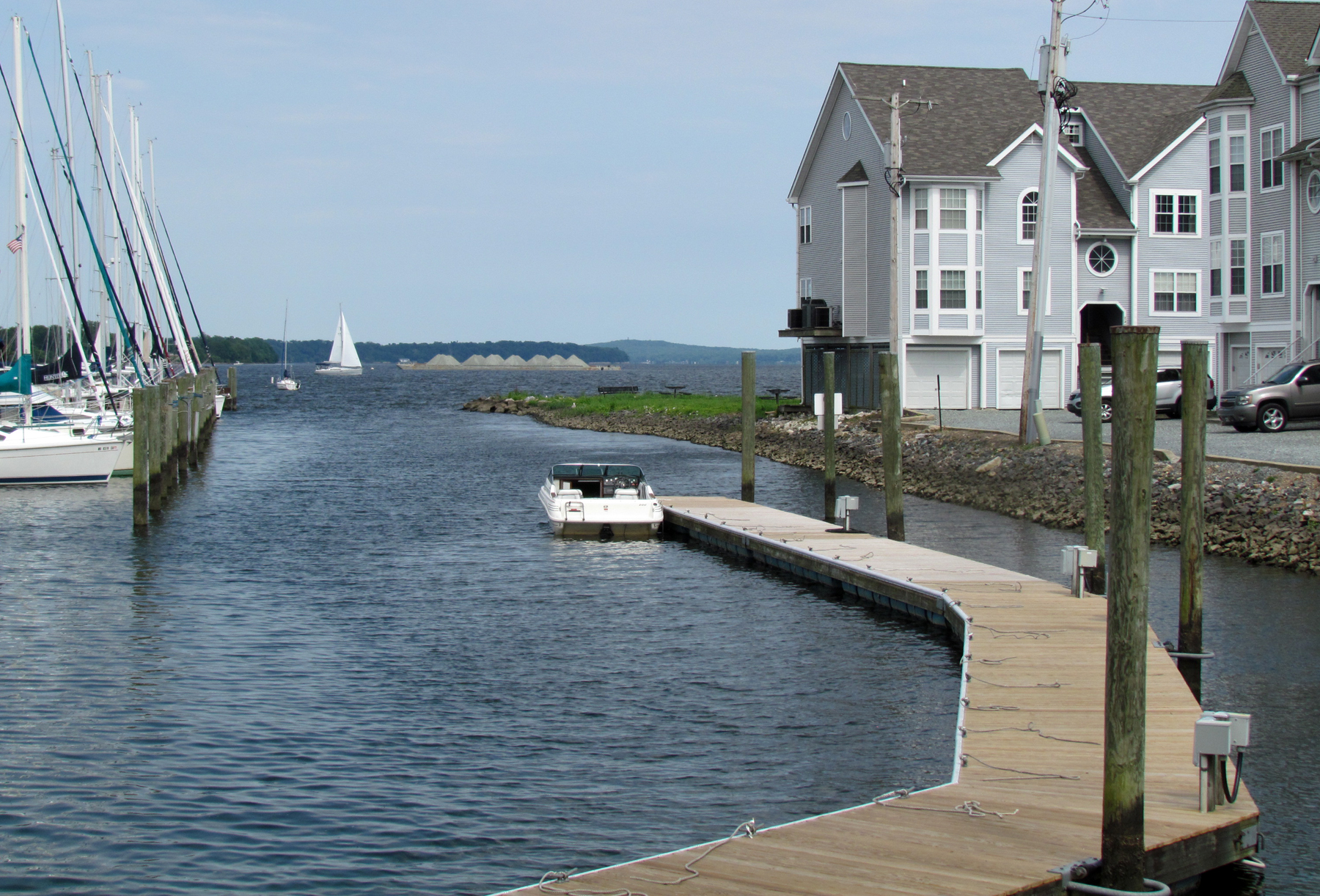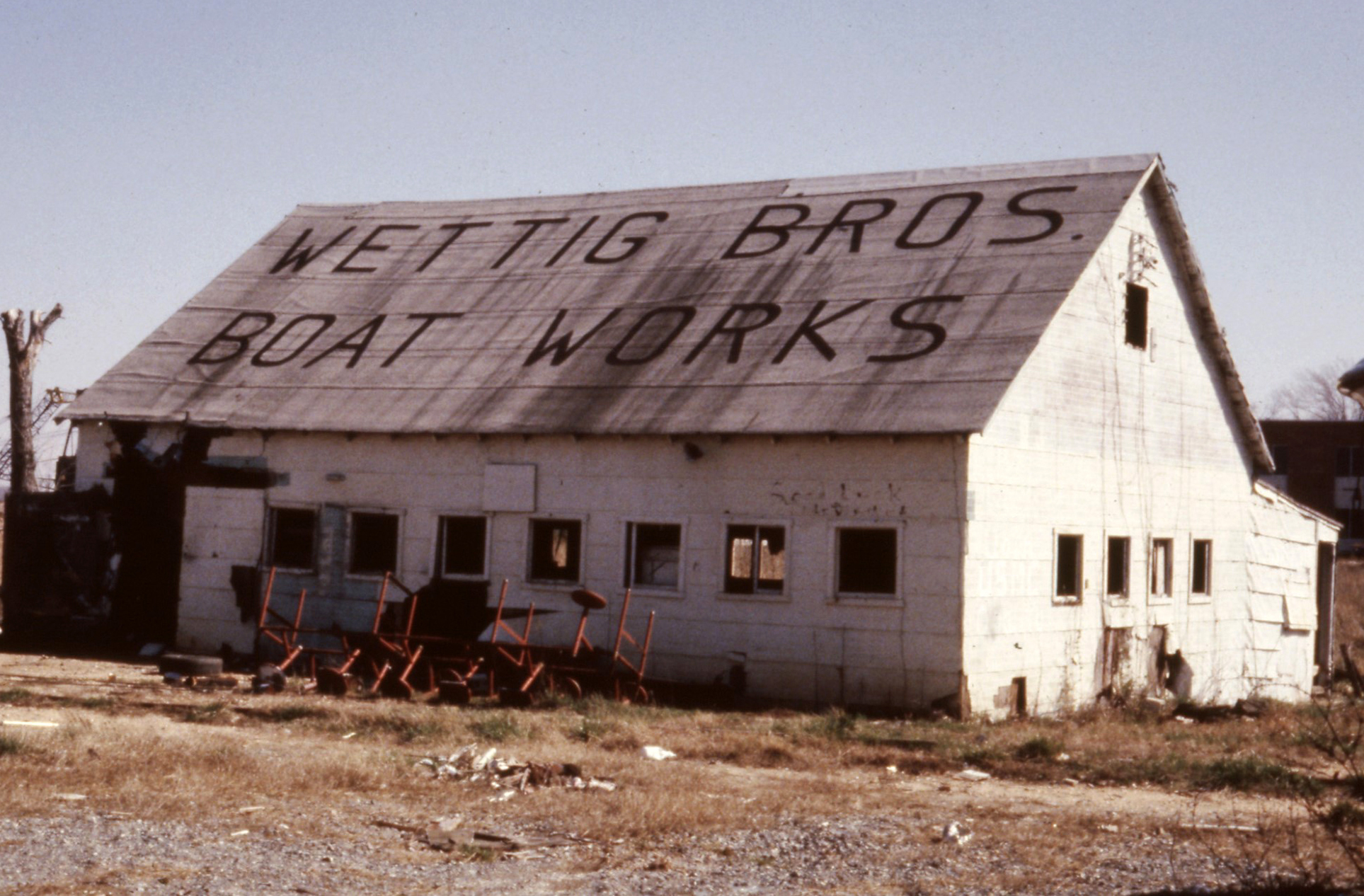 The 1930 Sanborn Map shows “Wettig Bros. Boat Works” on the water here at the foot of Fountain Street, and also appears on the 1955 Sanborn Map. Begun by William Marshall Wettig (1903-1949) and Elma C. Wettig (1905-1976), it was then operated by their sons, including James “Bay” Wettig, Sr. (1930-1976), Robert L. “Bobby” Wettig, and William “Bill” Wettig. Prior to the Wettigs owning it was Taylor’s Boat Yard, owned by Edward L. Shires, a boat builder. Bay and Bobby Wettig had piers for boats, good fishing, and a gigantic fish tank that kids remember in Bay Wettig’s office in which they kept local river fish. Their brother, Bill, “did the books for the brothers” says Jane Wettig. They did boat and engine repairs and also pulled boats of up to 45’ and stored them for winter. Brenda Hall Wettig says that Bobby was her husband’s Dad and “He was such an awesome man!”
