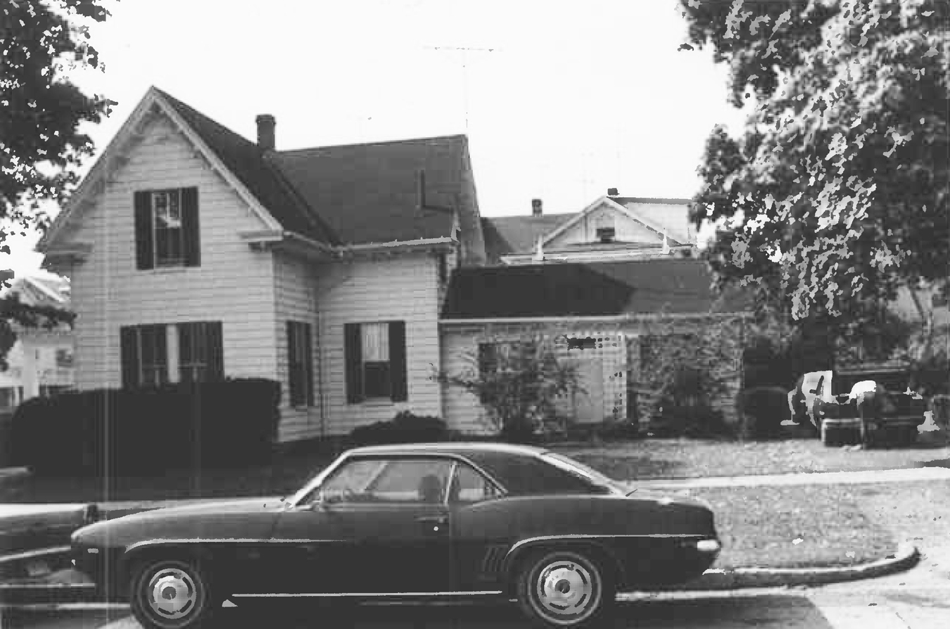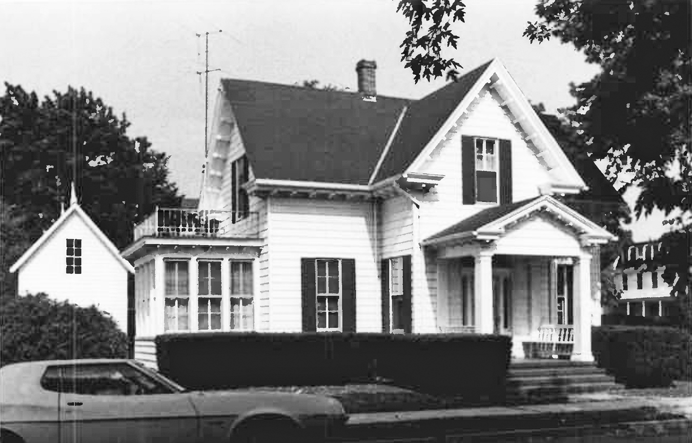 In 1990, Chuck Maslin opened this home to an Annual Candlelight Tour. The Greek cross plan of the house was covered by four prominent bracketed gables with a center hall including a small foyer and cross hall in front and one room on either side. Marbelized slate mantle pieces were in the living room and dining room. The owner’s taste was reflected in many collections from the sports world and his travels, including the halter of the horse Northern Dancer and Billy Shoemaker’s goggles from his final race. Original Mazda lamps were in the living room chandelier. Noted were the original four-over-four double-hung windows, still in service after more than 100 years. Modern additions were a hot tub and wine cellar (that no longer exist). His Christmas tree shined with several thousand golden lamps and balls.