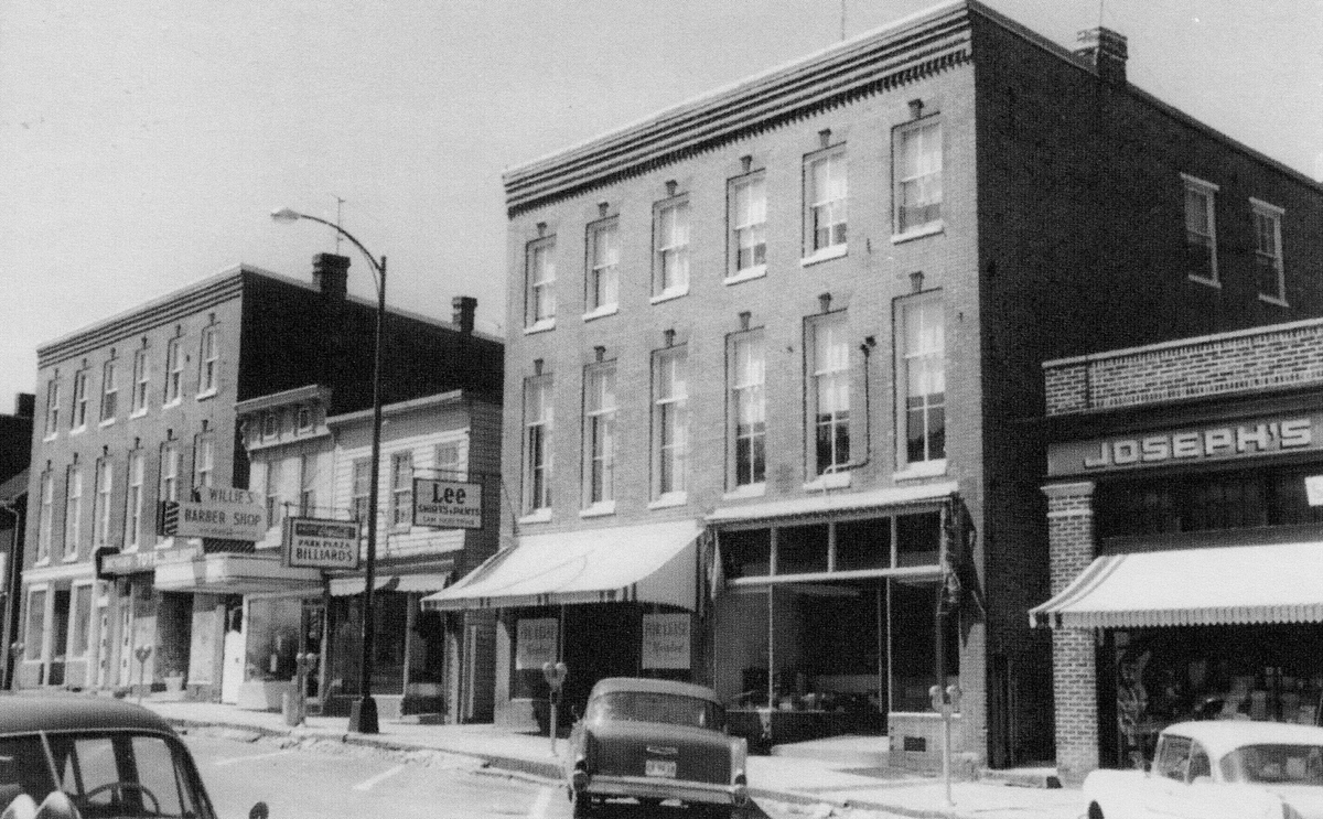 After Aleda’s Dress Shop closed, the first floor became the home of the Dolly Mae Apparel shop in 1990, which had moved from its previous location at 201 North Washington Street. By 1993, the ground floor had become Mystique, a “unique gift shop,” that sold beanie babies. In the early 2000s, it became Gotham Antiques; then Camelot Bridal around 2007, run by Bethany Shaffer and Sean Chaney; and in 2015 it became The Art Rooms Professional Art Supplies, owned by Liz Arango-Howshall. In summer 2018, Liz retired and left The Art Rooms business in the competent hands of Bill and Gay Lynn Price with lots of talented help from Jimmyo Burrill. In March 2021 The Art Rooms succumbed to the effects of the Covid-19 pandemic and closed. A new store, Bowman’s Butcher Shop & Provisions is planned for early summer 2021.