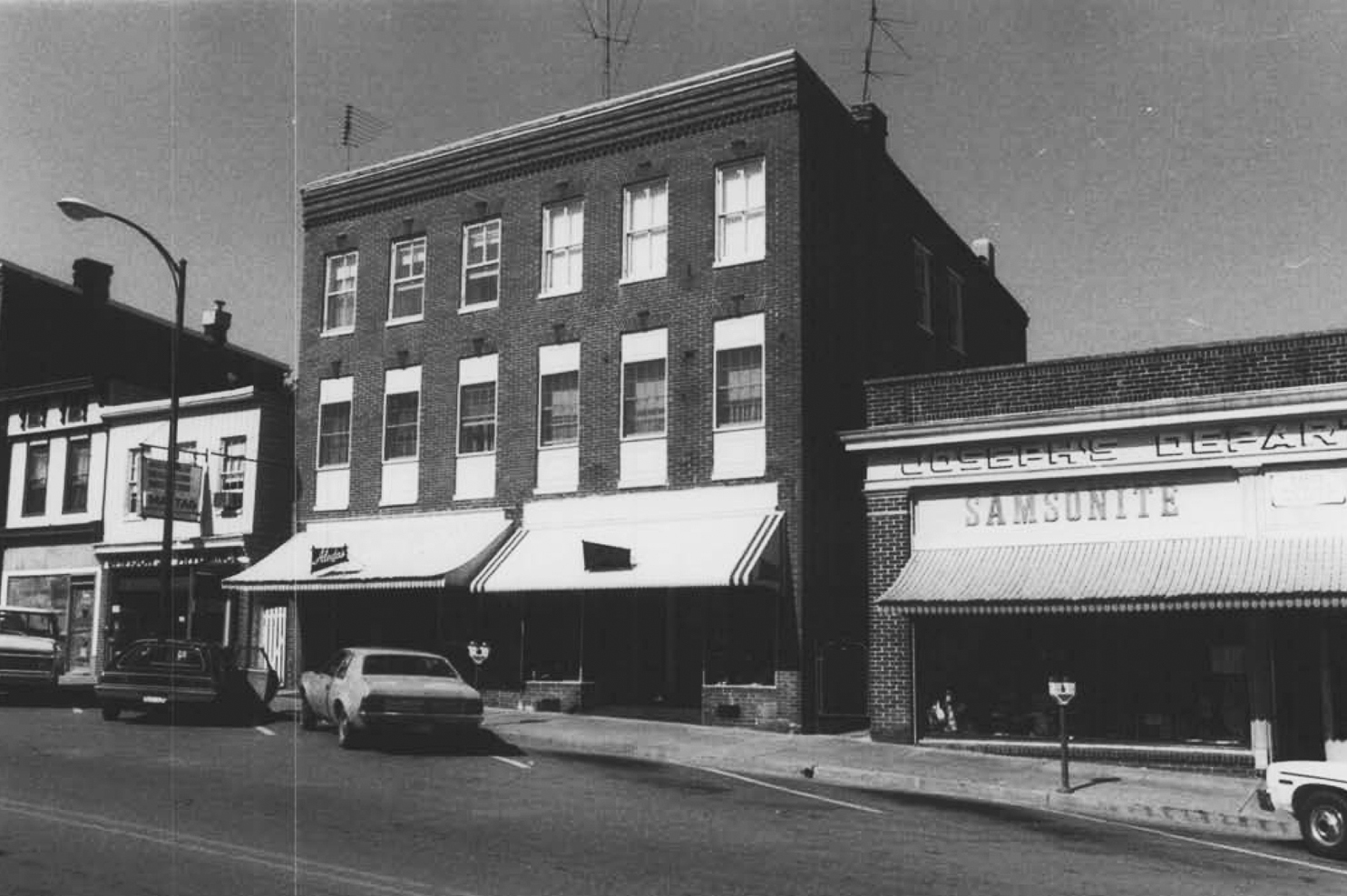 This became Aleda’s Dress Shop around 1960. In 1974, Francis Seville and his wife, Ilse Wiley, lived above the store and opened their home to the 1976 Annual Candlelight Tour. Their apartment was a two-floor living space and one of the halls was highlighted by a conservatory-like area and an original white brick wall. The library walls were lined with books while the living room was decorated with yellow-and-white walls. On the upper floor the master bedroom was in complementary shades of blue, while antique oak furniture decorated the guest room.