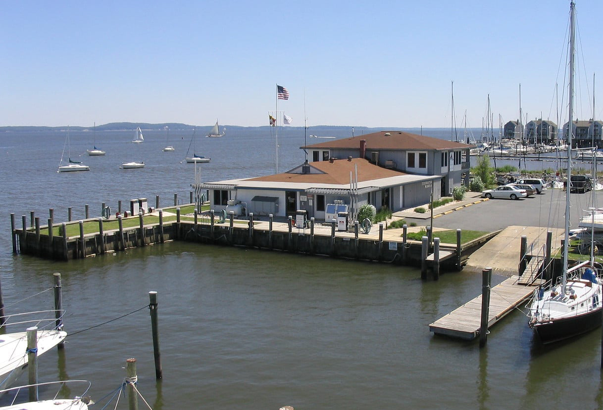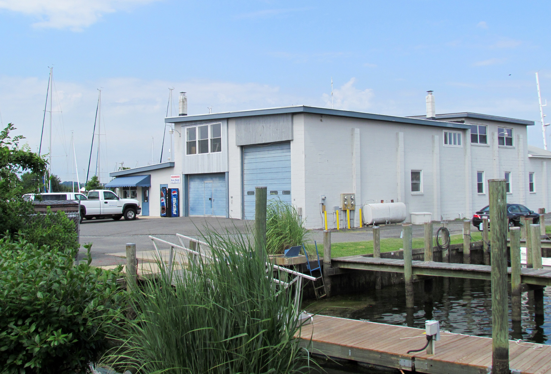 After Friendly Oil moved to St. John Street and later out to Route 40, Gary Pensell (born 1941) and his wife, Barbara, saw an opportunity for a marina on the waterfront property. It took him five to six years in the 1950s of preparing for the marina. While dredging the area in 1953, they found a ship that had sunk on the bottom with its propeller sticking out of the water. Doug Burdette was there during the dredging when they latched onto and lifted the big propeller and shaft out, to the surprise of everyone around, says Doug. The propeller and shaft are now displayed on Lafayette Street alongside the Maritime Museum with a plaque: