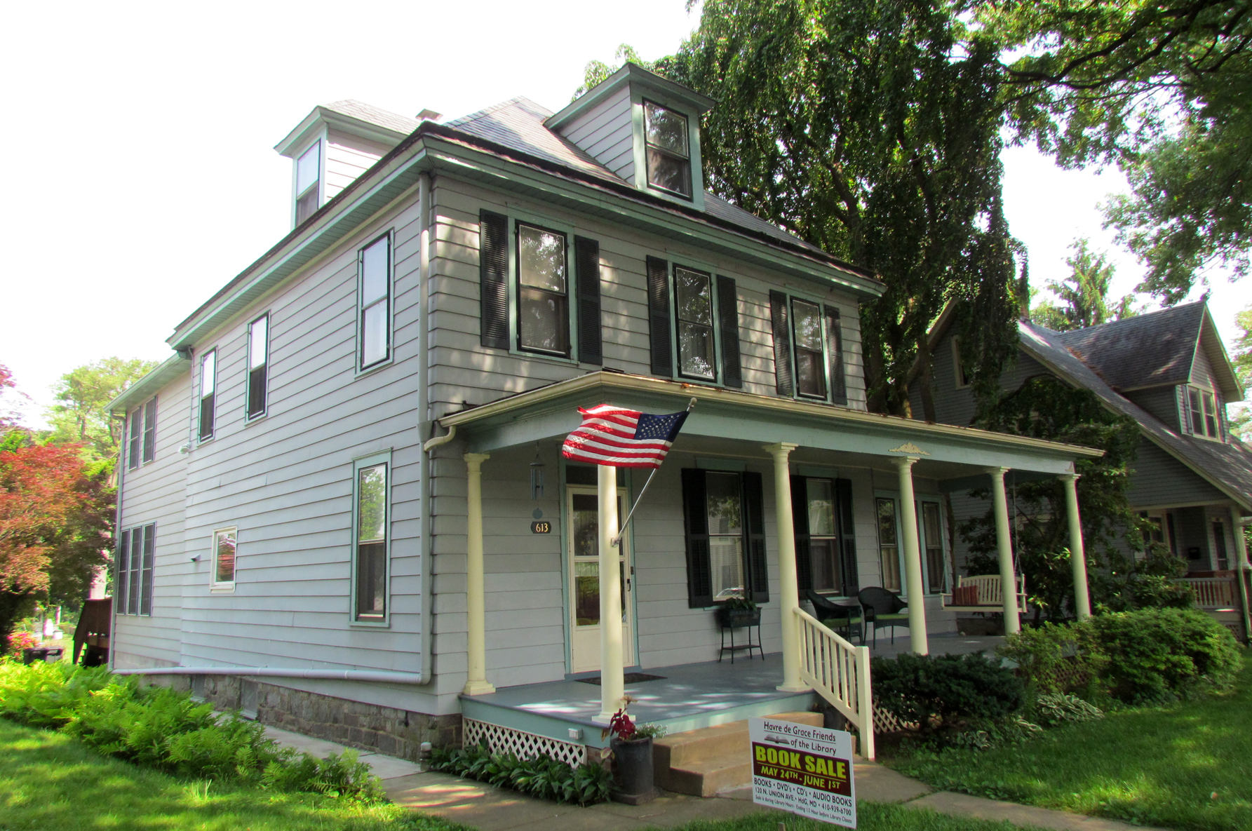When William A. Bailey (1816-1873) died, he and his wife, Phebe, owned five parcels of land including this one. When Phebe died in 1906, Court Trustees for their heirs issued deeds for the land. Two parts of Lot 386 were sold to David A. and Mary Fisher by 1910; the Fishers sold those two parts in 1913 to J. Howard Taylor (1878-1960) and Lucretia Taylor. This house was built on that land either by the Fishers between 1910 and 1913 or by the Taylors around 1914. It is known that the Taylors had telephone service in their home in 1916. David Fisher was a fellow director of the Havre de Grace Banking & Trust Company in 1910 with Murray Vandiver, Charles B. Silver, and others. Lucretia Taylor died in 1929 and J. Howard Taylor later married Bessie M. Taylor (1910-1990).