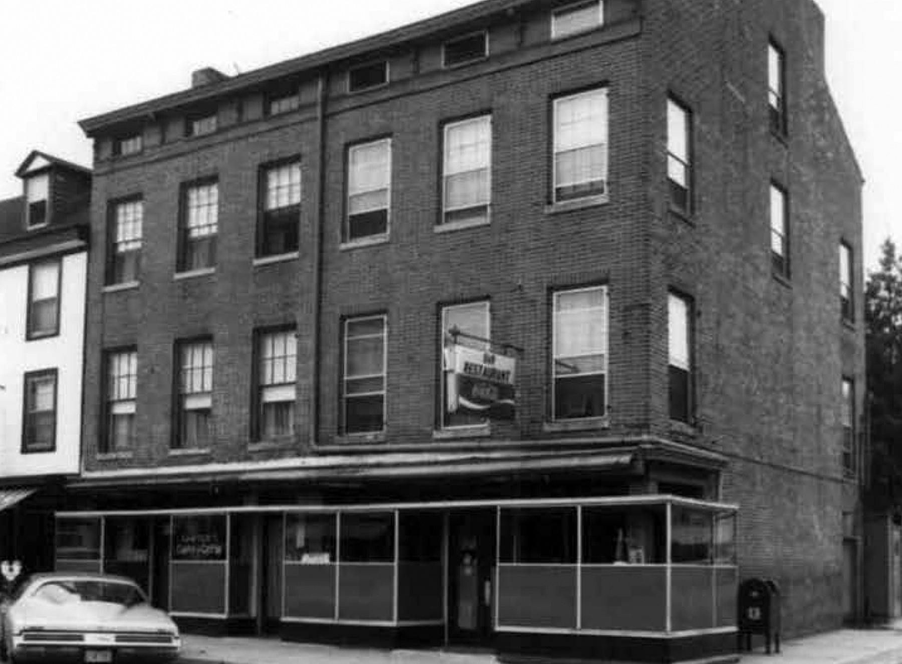 The Davis family, having owned this building for 45 years, sold it to Robert L. Murphy and his wife, Arline Murphy (“Fly and Flip”) in 1965. The Murphys re-opened The Maryland Restaurant here, having relocated from across Pennington Avenue at 200 North Washington Street. Fly and Flip lived in one of the upstairs apartments, as did Flip’s sister Rebecca, whom they nicknamed “Flop.” Many of Flip’s clientele followed them here with the business. Ed Strong’s mother worked for them as a cook and Ed can remember meeting Cal Ripken, Sr. here one day. William R. Pyle ate many meals here between 1956 and 1970; he enjoyed 5-cent coffee, 20-cent soup, and his favorite hot dog and baked-bean casserole. And Jay McSpadden, who loved their hamburgers, says Fly and Flip were “awesome people.” John P. Correri remembers Fly and Flip as “good customers of Correri’s Fruit Market” next door. Cindy Lee remembers Rebecca’s doll collection that she allowed her to play with sometimes.