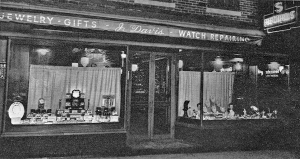 Jacob Davis died in 1936 but the business was continued by his wife, Katherine Davis, until her death in 1948. Their son, Abe Davis (1893-1966) (at one point a City Councilman and Chairman of the Harford County Board of Commissioners), with his wife Edith, took over the store and continued selling jewelry, Gorham sterling silver, records, watches and more into 1964. Kathleen Walter shared that for her parents’ 25th wedding anniversary in 1962, she and her sisters used their pocket and lunch money every week to make payments on a gift for them—when Abe and Edith learned this, they gave the sisters a discount, which she appreciated. Abe and Edith held a closing sale in February 1964 to sell off their merchandise after 74 years in business