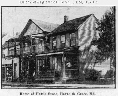 Hattie Stone, who also taught Sunday School in the United Methodist Church, became Havre de Grace’s infamous serial killer in 1929. She was convicted that year of murdering her son, George, after murdering her husband (Edward A. Stone), her mother-in-law, and another son during the previous three years. Much has been written about her but reportedly she used strychnine and murdered for insurance money so she could run away with a 39-year-old railroad worker, James “Jimmie” E. Aberts, who was boarding in a Stone home off St. John Street. She was one of several children born in 1892 to Margaret and John A. Blackburn. Her father was the Cemetery Sexton in Angel Hill Cemetery, where he dug all the graves and she played. It is also the cemetery of all the victims.
