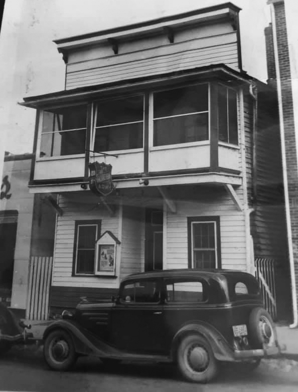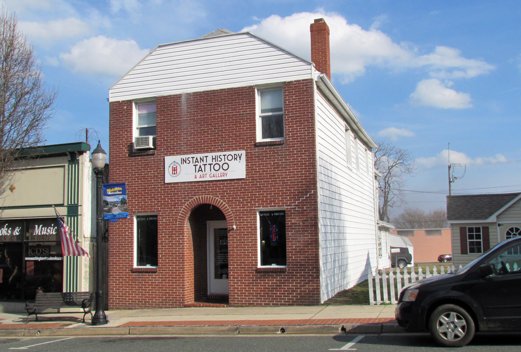 In the early 2000s, this was the home of Shamrock Realty and in 2009 the ground floor was the The Art Rooms, owned by Liz Arango-Howshall (before she moved it across the street). After that Barbara Conley moved Stirling Bridge Jewelry & Gifts here in 2012, then it was a photography studio, and after that it became Instant History Tattoo in 2016 with Tony Veres and Kayli Curry-Veres, artists. Instant History Tattoo then moved across the street to 214 North Washington Street. Teal Antler was here for a short time in 2020 during the Covid pandemic.