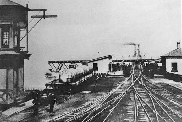 A steam-powered ferry boat transported the rail cars (but not the locomotives) across the river to Perryville and back from 1837 until 1866. The first ferry used was the 453-ton “Susquehanna” under Captain William W. Virdin (1803-1871), with 1,200-person capacity, replaced in 1853 by the “Maryland.” The “Maryland” was the first steel ferry boat to transfer the complete train and was large enough to transport passengers also. After the first bridge was built across the Susquehanna River in 1866, the “Maryland” was no longer needed and eventually was sold to a company in New York where it continued to transport railroad cars across the East River until she caught fire and burned in 1888.