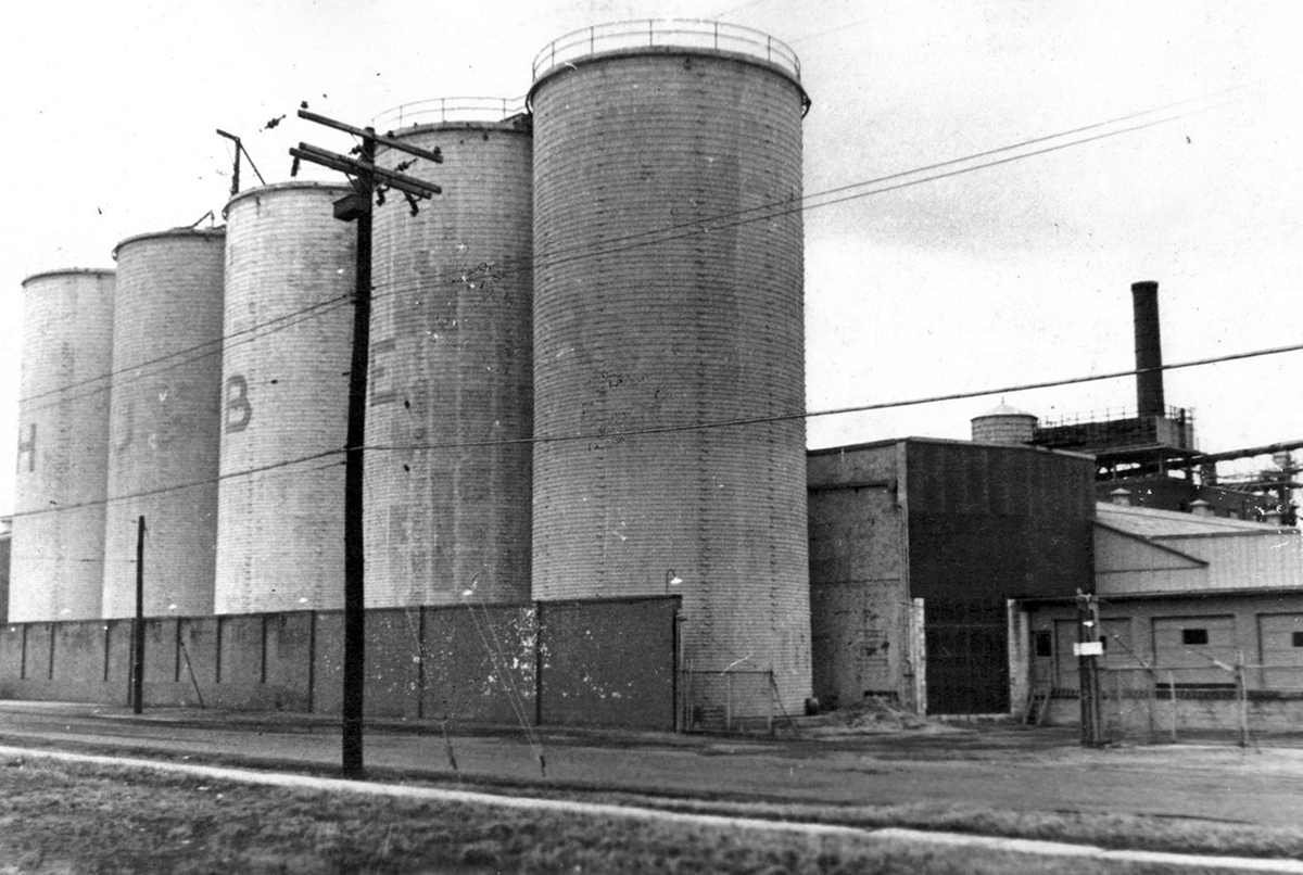 The first silica plant for Huber Engineered Materials, a business unit of the J.M. Huber Corporation, opened here in 1952 when it took over the defunct alcohol distillery. Jack Lill had been the manager of the Chemicals Division and toured all over the east coast in the 1950s looking for the best place for a silica plant. He selected Schindley’s Whiskey Distillery in Havre de Grace. Huber occupied about 14 acres of land, with offices also at 907 Revolution Street. In 1961, Huber expanded by razing its building on Adams Street and putting up five 65-foot-tall silos that were 30 feet in diameter. They were used for storing finished products.