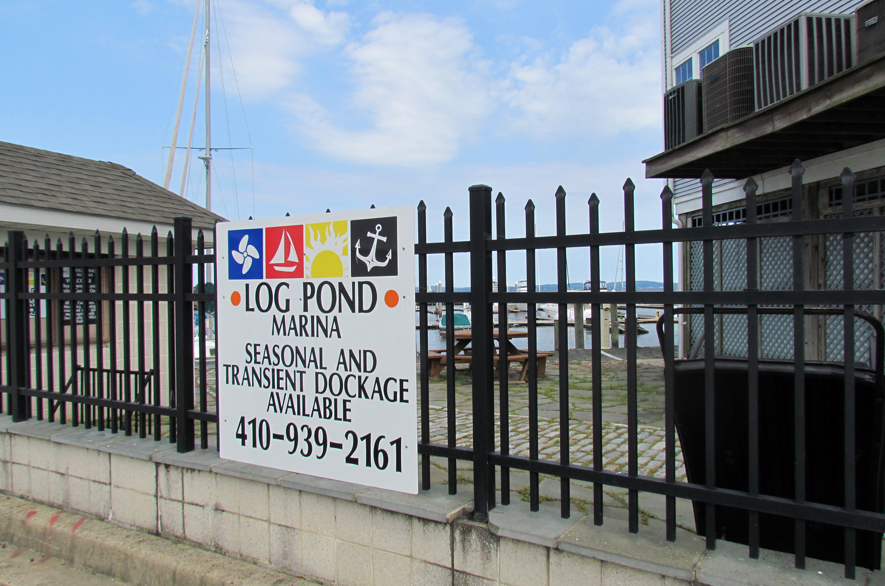 During the construction of the Log Pond Marina in the 1980s, logs were found on the bottom that had been there for more than 100 years. Many buildings in town were framed from the trimmed logs transported this way. The Log Pond Marina (named with a nod to its history) now serves the surrounding condominiums as well as the row of townhouses called “The Log Pond” on Concord Place at the foot of Revolution Street. In early 2018, brand new Epay Wood Floating Docks were installed at the Log Pond Marina.