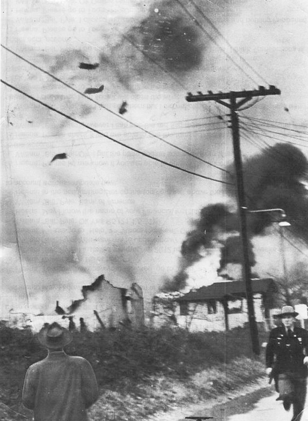 Most people alive at that time remember that day because a series of explosions ripped through the 10-acre sprawling fireworks plant touching off a mammoth fire and killing the owner, James Archie Fabrizio (1928-1960). A lady who lived nearby, Nellie Stansbury, also lost her life from a heart attack during one of the explosions and others were injured. And another man, Jack Charles Howe, was injured badly and died four days later, leaving Minnie Howe a widow along with three infants. James Fabrizio‘s father, Achillo Fabrizio, had opened the fireworks factory in 1922. On that memorable day, buildings in the city shook, nearby houses collapsed, windows blew out, and Don Forsythe remembers seeing a roof flying up in the air like an umbrella. And David Malin recalls that the plume of smoke was so high it engulfed the press helicopter taking photographs. He also recalls that, as a high school student, they later “cleared many fireworks from the site,” and took them to school. That location is now home to the Grace Manor housing development.