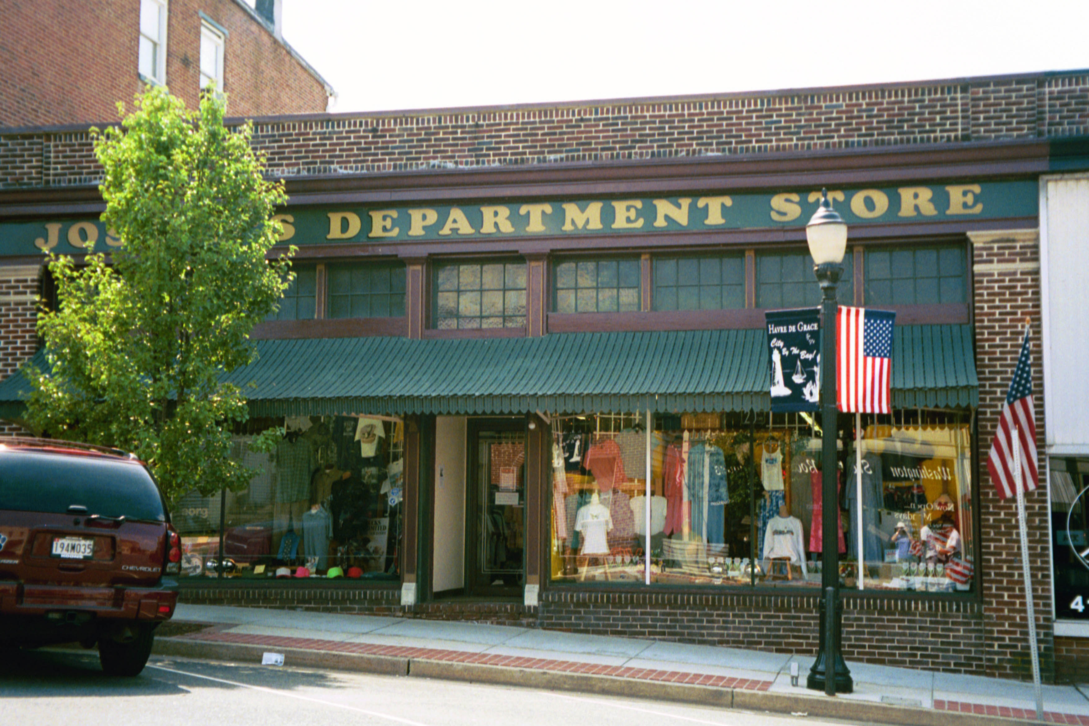 It is known, however, that Joseph’s Department Store opened in 1937. This is possibly explained by ownership having reverted to the Faheys in the 1930s and the failure of the deceased Michael Fahey to have filed a timely new deed to Joseph D. Silverstein. In the alternative, the front property may have been rented by Joseph Silverstein prior to his purchasing the whole building. The 1940 Census shows that Joseph and Gussie Silverstein were living in a rental unit at 401 North Union Avenue at the time. Joseph had been born in Russia in 1909 and Gussie in Austria a couple of years before that. The Silverstein family became and remain prominent citizens in Havre de Grace. Joseph and Gussie had three sons, Dr. Emanuel H. “Monte” Silverstein (1935-2021), Elias H. Silverstein, and Dr. Louis Silverstein.