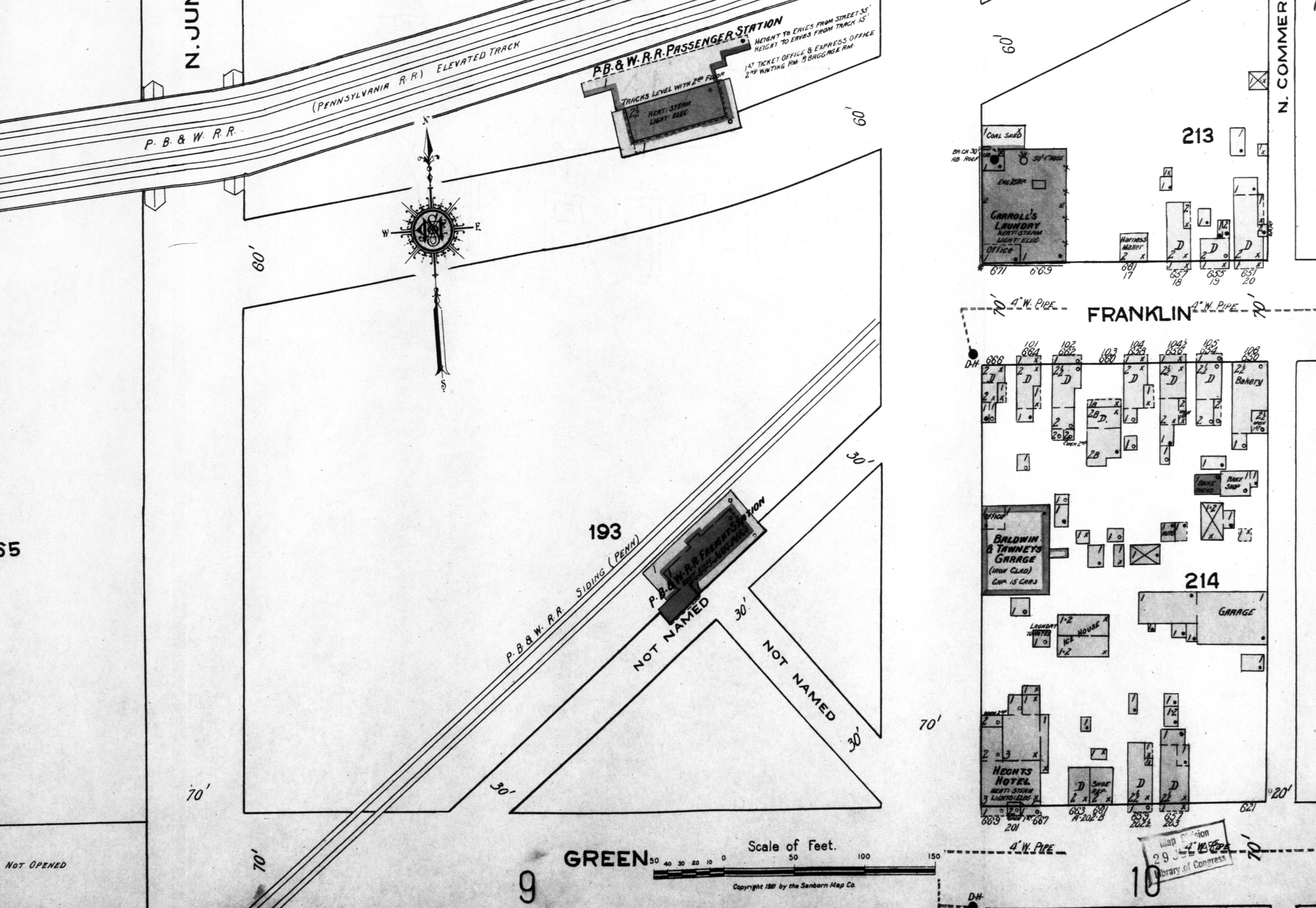 Portions of this parcel of ground were sold to Isaac Hecht (1864-1913) by Abram P. McCombs (1824-1916) .and Maria McCombs in 1892, and by Joseph Good (1864-1941) and Fannie Good in 1897. Isaac Hecht in 1890 had built the large Hecht Hotel at the intersection of North Adams and Green Streets. This land adjoined the hotel property and was where Isaac built an “ice house” and the “Hecht Hotel Livery” so hotel guests could stable their horses and carriages. After Isaac’s 1913 death all of his property went to his wife, Elizabeth Weiss Hecht, who herself died in 1928 and left their property to their two sons, Lee Isaac Hecht and Lawrence W. Hecht. This property descended to Lawrence’s widow, Florence Hecht, who in 1950 married Judge Frederick Lee Cobourn (1885-1962).