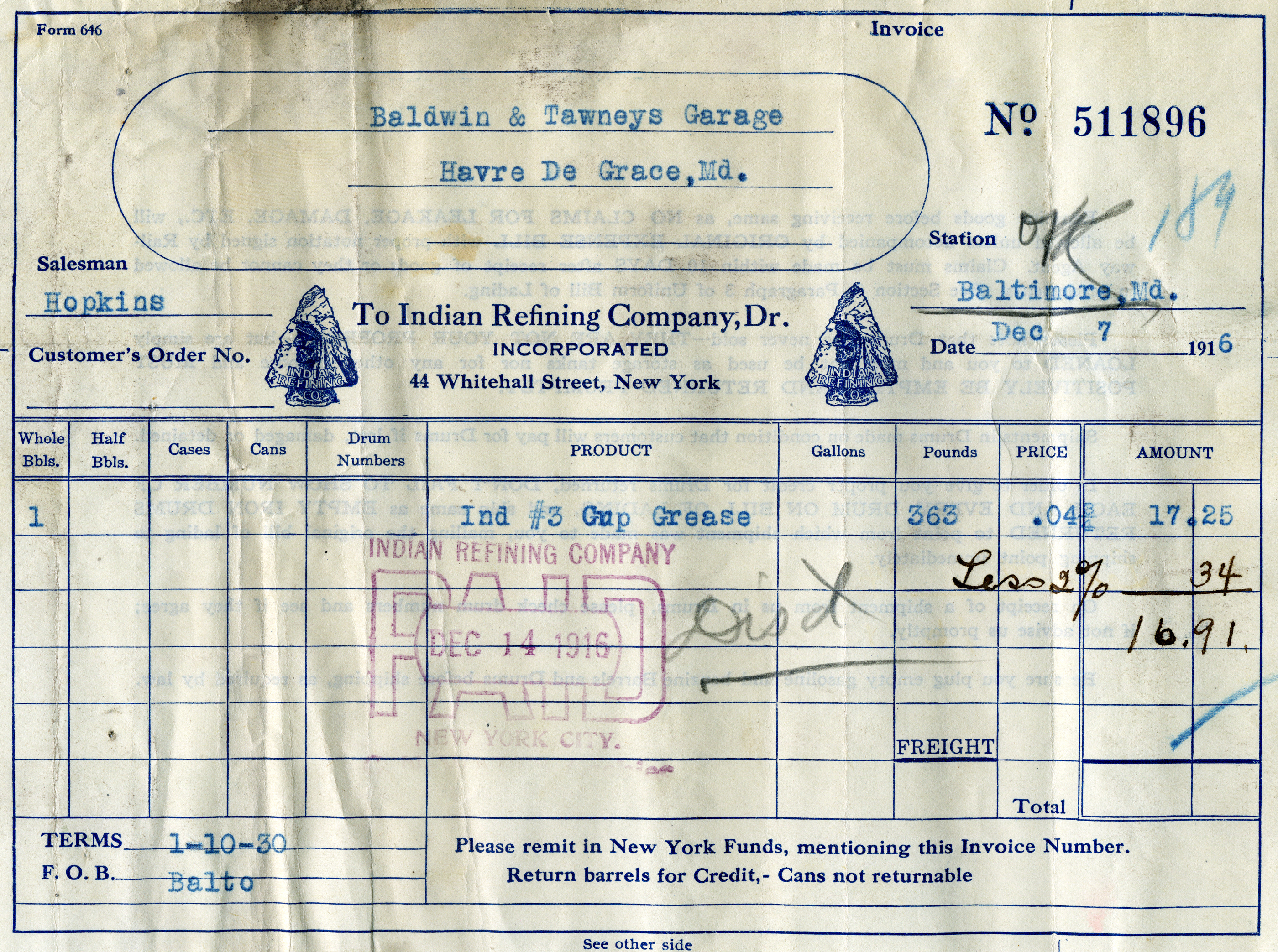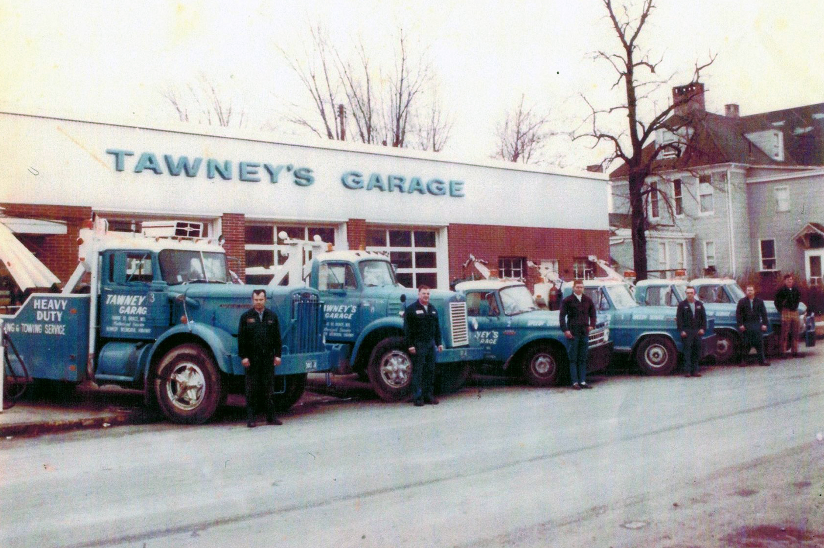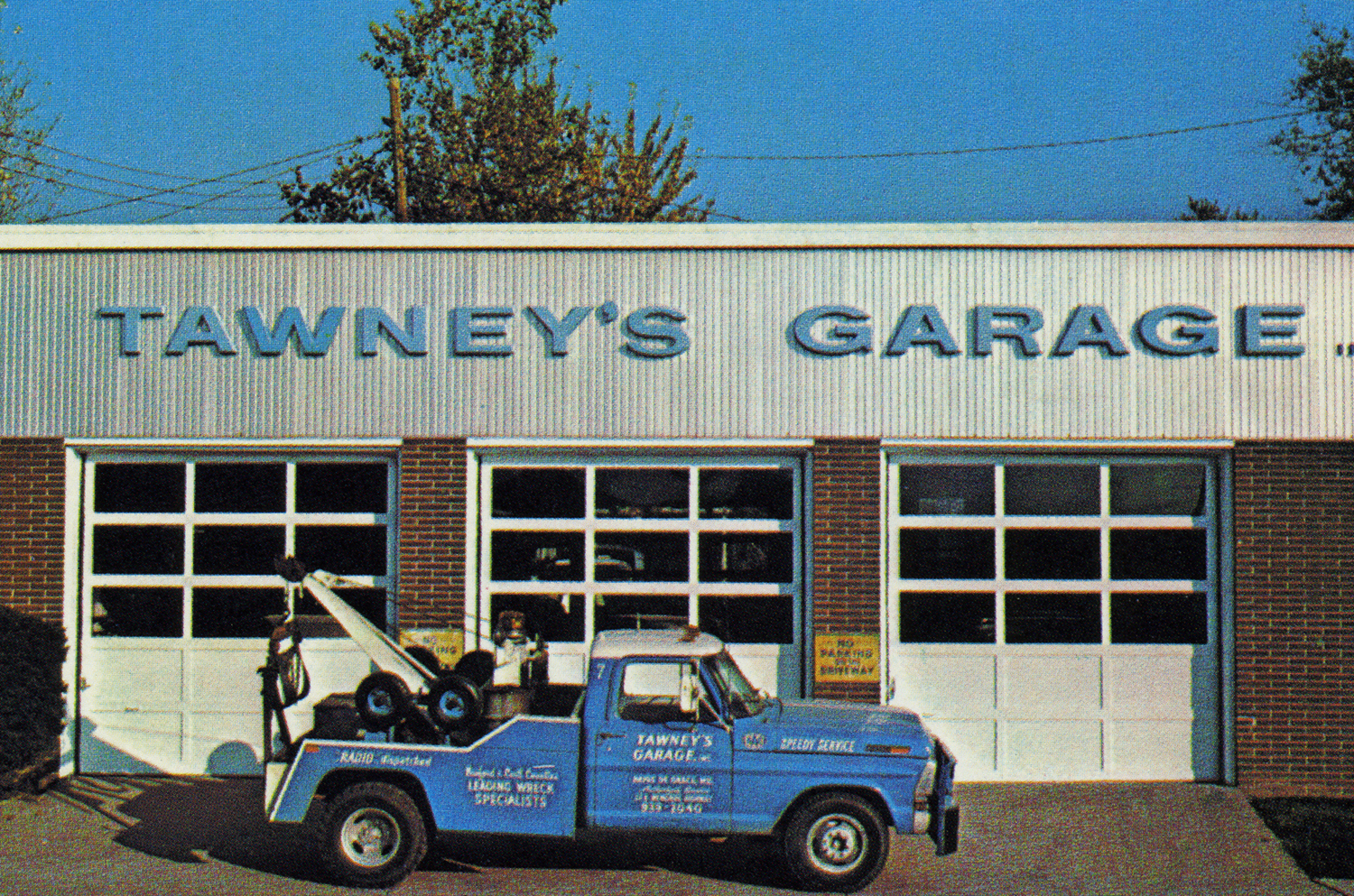 In 1954 Florence Hecht Cobourn not only sold this property to Henry J. Loeblein (who served as Mayor from 1965-1973) and his wife, Eleanor, but Florence became his mortgagee. It may have been at that time that the business name became Tawney’s Garage (even though by then both Samuel Baldwin and Garfield Tawney had died). The City frequently purchased tires for police vehicles from Tawney’s Garage during that time—in 1956 the City bought four tires from Tawney’s for $63.20, for example. While a portion of the current facility may date back to the early 1900s (which is how the current owner found some bookkeeping records), some of it may have been rebuilt when the Loebleins bought it.