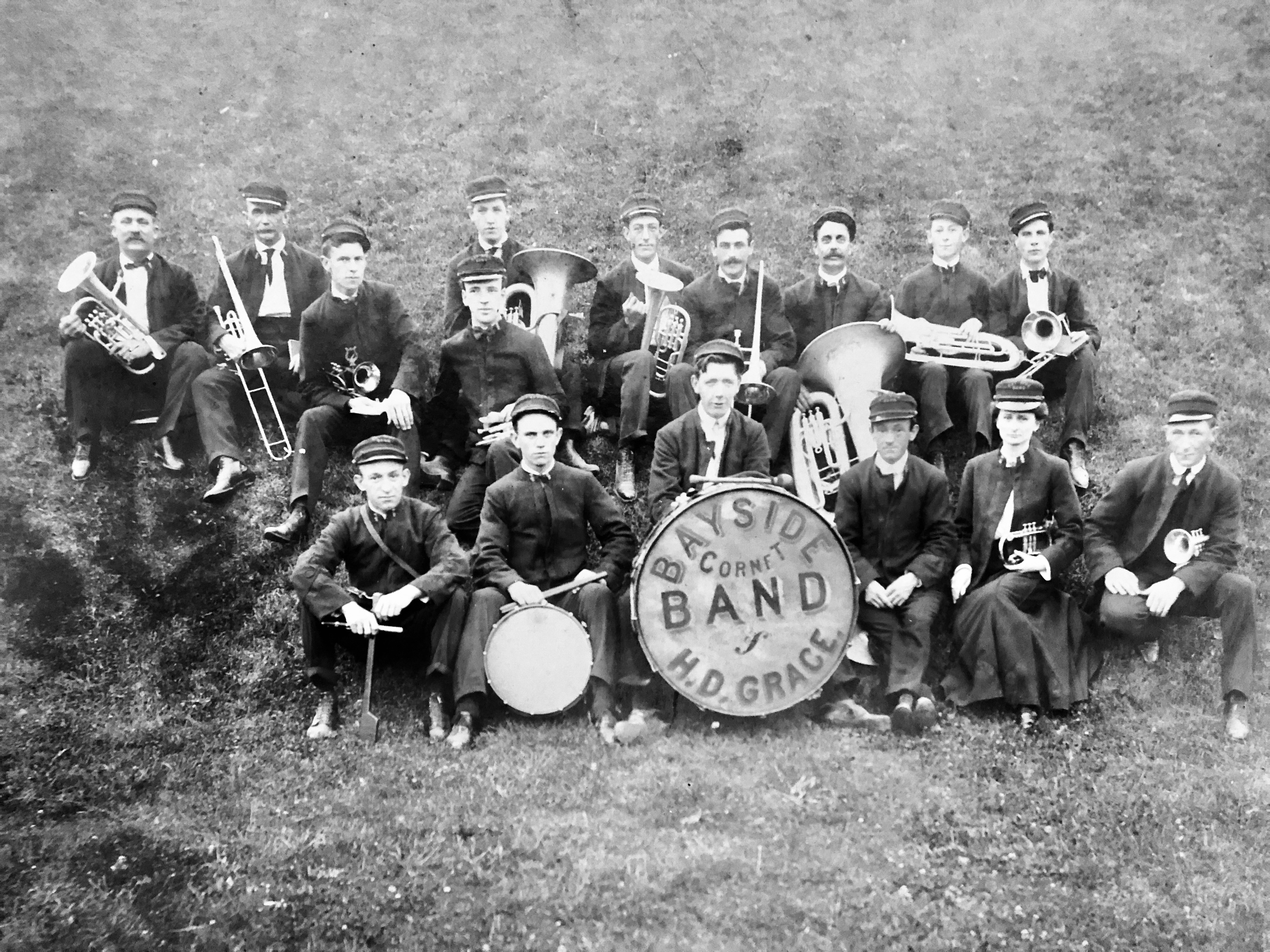 from 1894 to 1908. George and James [Jim] were also known locally as members of the Bayside Cornet Band, which performed around town between 1887 and 1915 at major events and in the bandstand in City Park (now Tydings Park). While they both played the snare drum, another Band member was John Kennedy who played the trombone. George and Mary Ann’s daughter, Annie Kate Howlett, later married Harford County Judge Frederick Lee Cobourn (1885-1962).