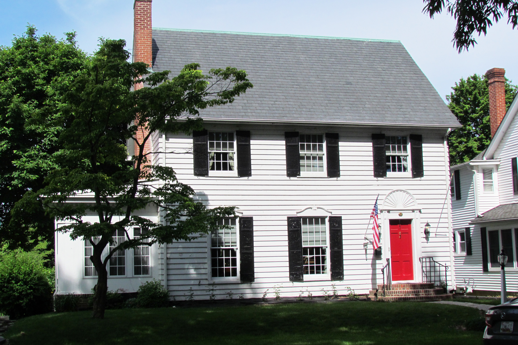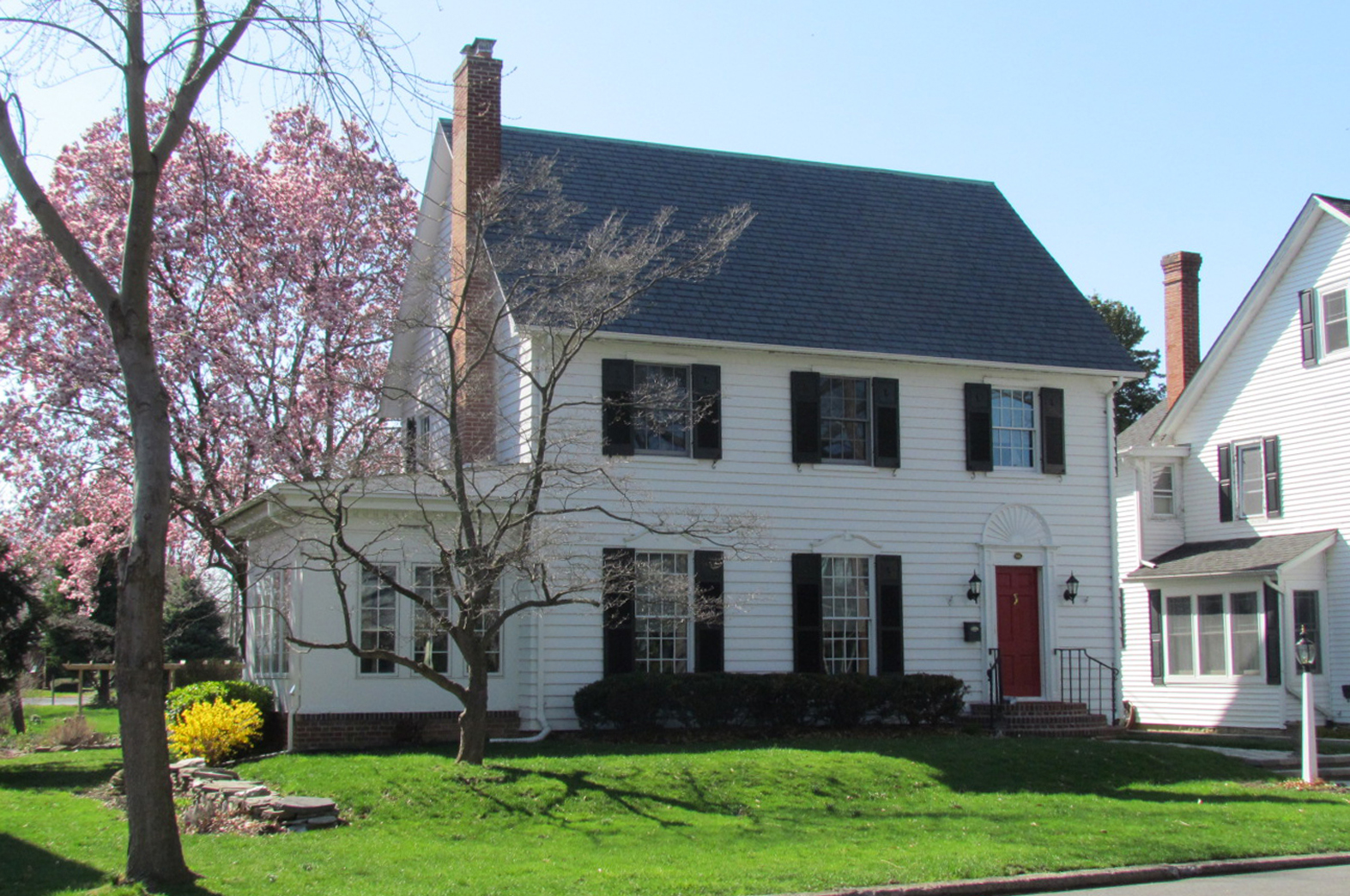 This lot of land, and other nearby lots, had previously been inherited by Kate and Rose Galloway, daughters of Captain Moses Galloway (1810-1881) and Henrietta Galloway. Kate and Rose sold this portion of the land in 1928 to Eldon F. Leithiser (1904-1990) and Dorothy Leithiser. They are believed to have built this white federal style house, now accented by a red front door. Eldon’s father was Richard H. Leithiser who began the well-known Richard H. Leithiser & Son menswear business on Franklin Street that Eldon joined and is represented by “& Son.” Eldon turned the store into Harford County’s largest apparel store for men and by 1963 Eldon and Dorothy bought that building. Eldon kept the Leithiser’s store in business for more than 50 years, having begun working as an errand boy when he was nine years old, and Eldon was honored in 1986 by being named a Harford County Living Treasure. In his Harford County Living Treasure interview Eldon explained that his ancestors had come here from Holland where “Leithiser” meant light house keeper, which they were.