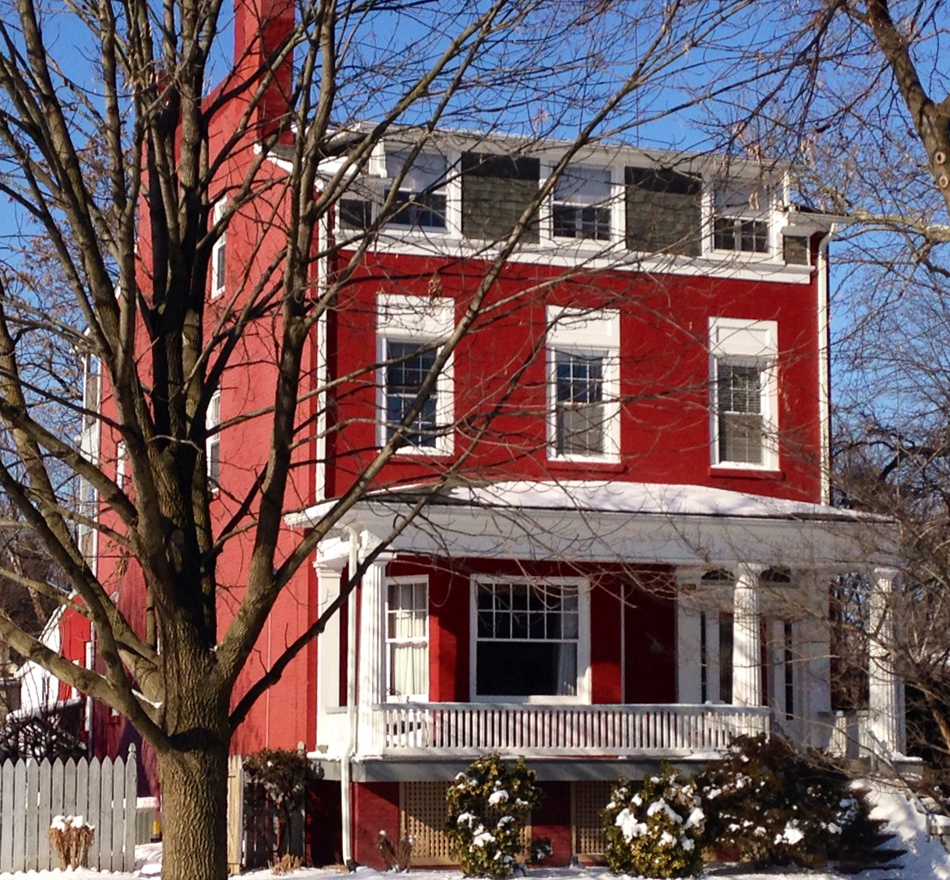 This Sappington House is the twin of the Hoke House across the street—at least as originally built. It has endured several additions and alterations, not the least of which is an exterior coat of ox-blood red paint. This property received an award from the Havre de Grace Historic Preservation Commission in 2014.
