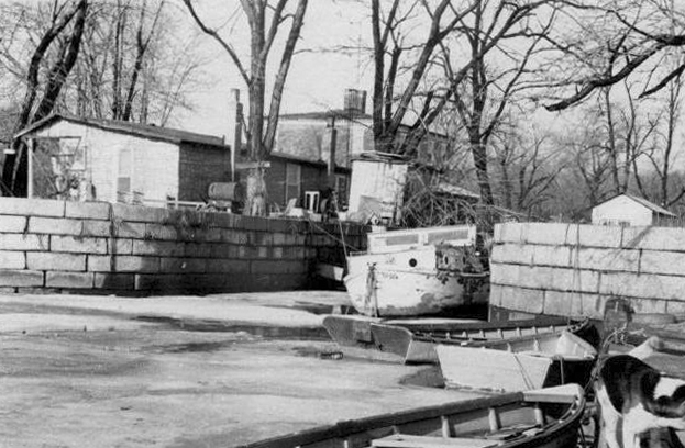 Most structures built to serve the canal’s operations are no longer standing but some foundations remain. One was William Walker’s Saloon, another was “Mr. Hopper’s Tavern,” and there was a “Hall’s Livery” at the Canal Basin. Not surprisingly, Coulehan & Hogan Fish Packing Plant was nearby. There also were numerous ice-harvesting operations in the general vicinity including Wm G. Whitney & Son’s Ice Factory in 1921.