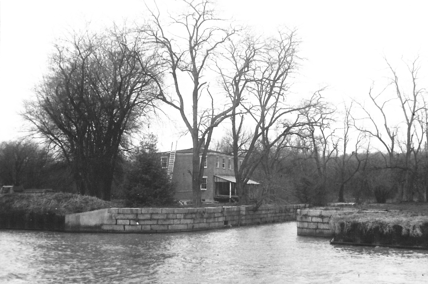 What is now a parking area just south of the Lock House had another small building on it for several years around the 1950s-1960s (see the photo). Vonda Elliott Craig grew up in it—she says her grandfather, Benjamin Elliott (born in 1888), pulled a one-room house out of the river during a hurricane (perhaps Hurricane Hazel in 1954) and set it down there for him and his wife, Mary. Vonda’s parents expanded the house to three rooms when they got married and Vonda grew up in it. The building, however, took off once more down the river during Hurricane Agnes in 1972.