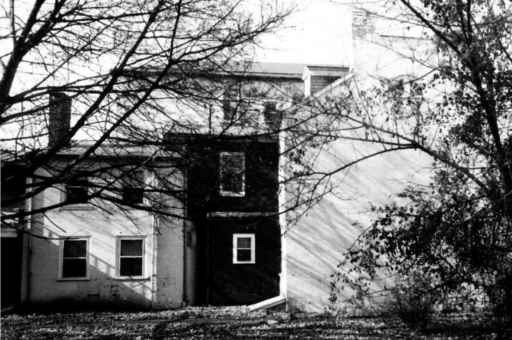 This building originally adjoined the “Tin Front Building” at 522 Franklin Street, which was built in 1900 as a three-story brick commercial building that had a tin front applied to the façade. In its 1977 inventory, the Maryland Historical Trust stated that although other buildings in the city displayed some exterior tin ornamentation, this building was “the only one to have its front veneered entirely with tin.” Sadly, after a large fire in 1981, the remains of the Tin Front Building were demolished. On investigation, it was discovered that the very extensive damage was because the fire ran quickly between the original 12-foot ceilings and the 8-foot drop ceilings that had been installed and were not detected.