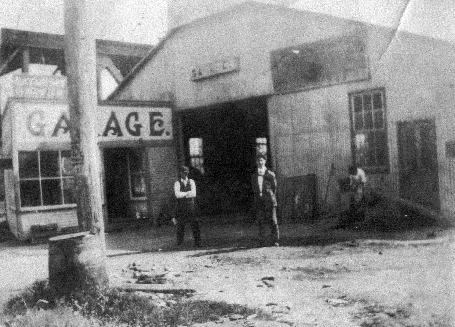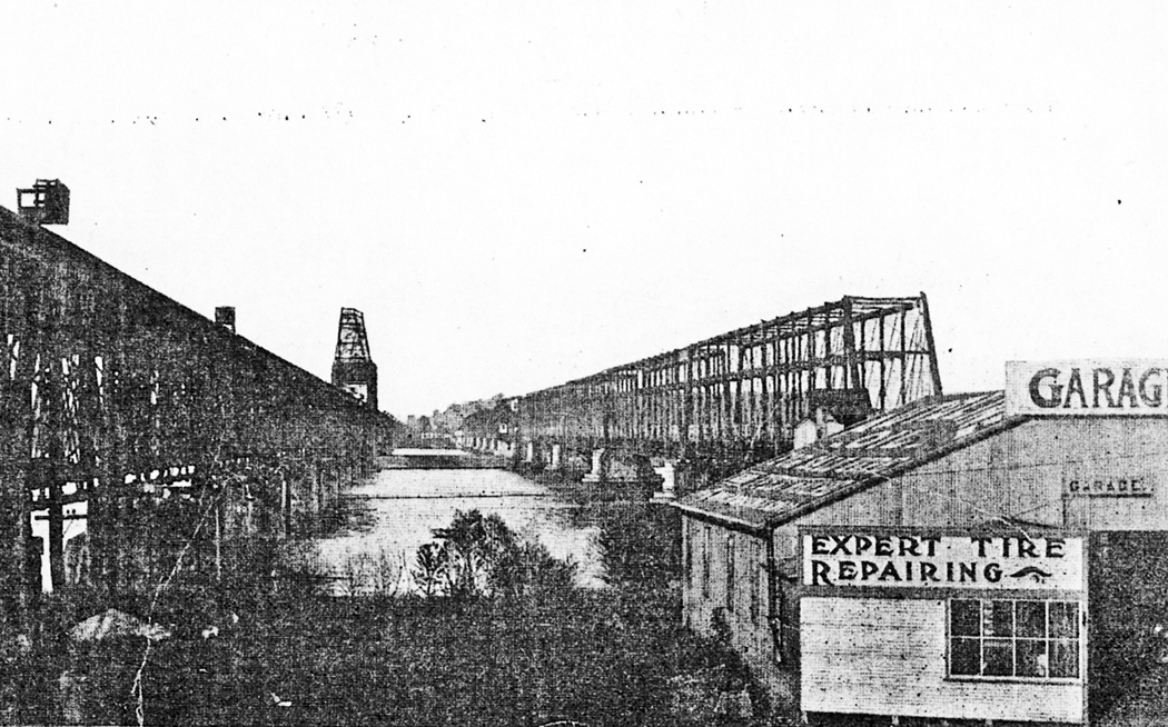 The 1921 and 1930 Sanborn Insurance Maps show a building here called “Garage, capacity 20 cars, Repair Shop.” By the 1955 additions to the Sanborn Map, this garage is marked as “Contractors Storage.” It’s also in the approximate location of the current David Craig Park.
