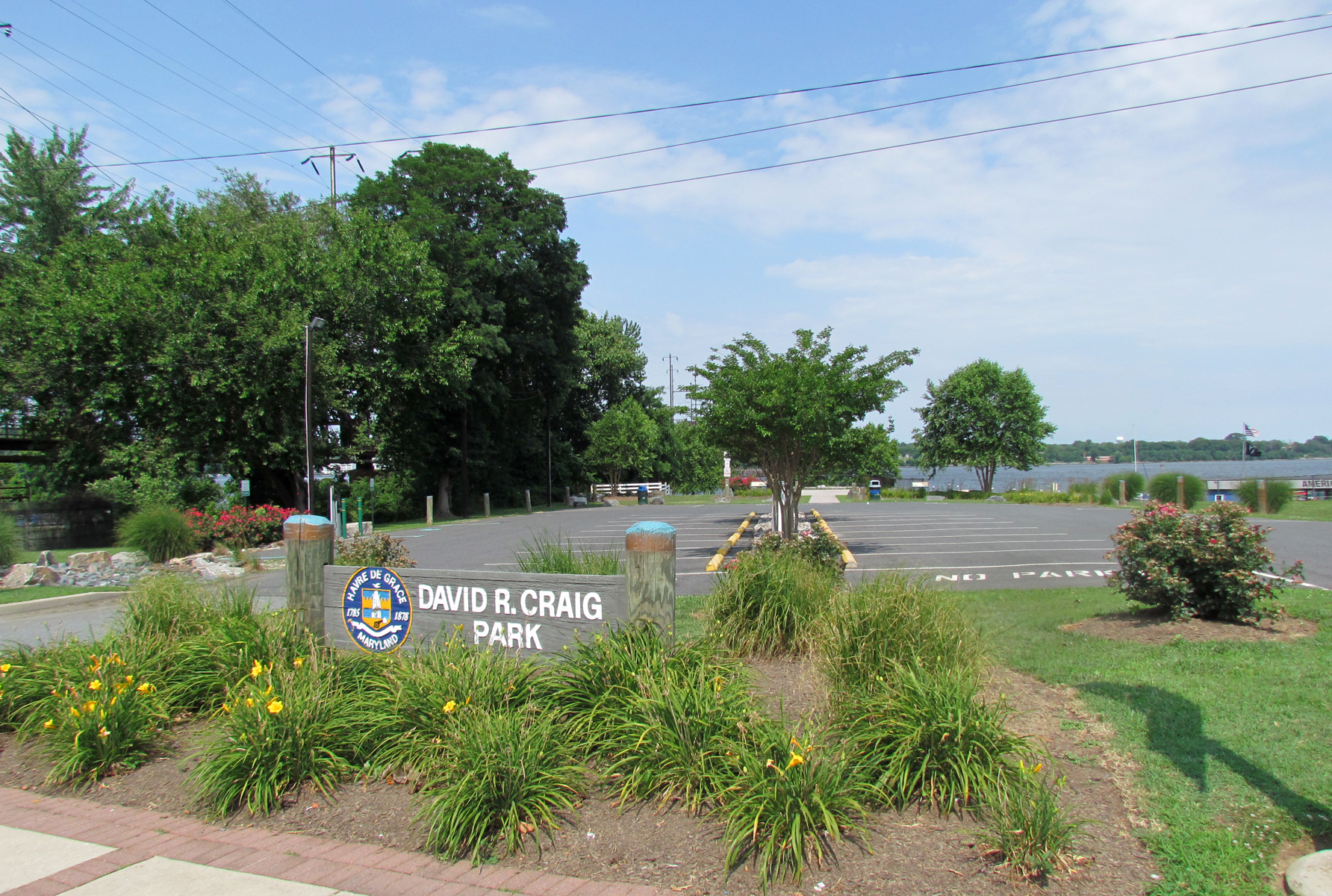 That one-acre Park was created in 2009 by a group of volunteers who spent many hours clearing debris and brush (as well as poison ivy!) away to create this waterfront park in honor of life-long resident, David Craig. They gave kudos to Vulcan Materials for the donation of granite that lines the shoreline, and Aldino Sod Farm for the donation of sod for the lower half of the park. David Craig was also a Havre de Grace Mayor and a Harford County Executive who now works for the State of Maryland. More recently, a level two CT 4000 ChargePoint Electric Vehicle Charging Station was installed in the parking area.