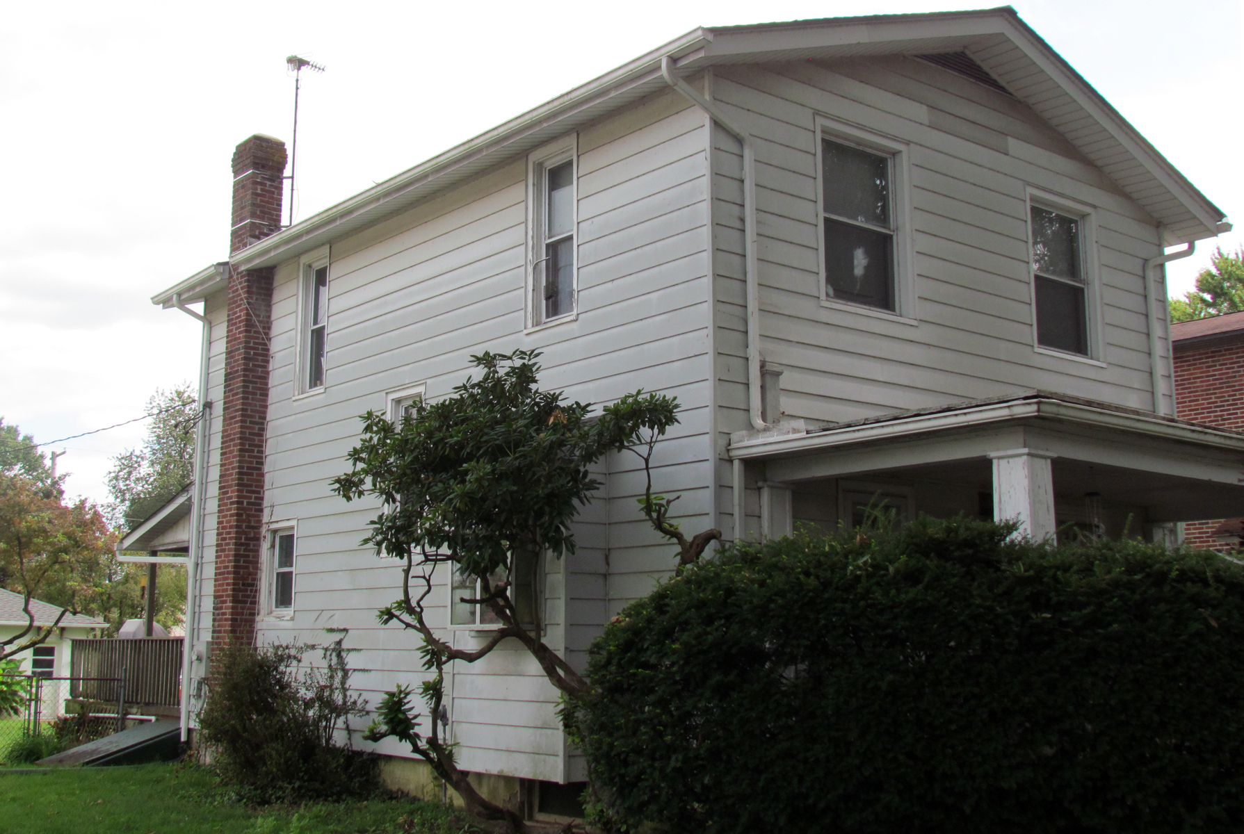 This is one of four similarly designed colonial houses in a row (from here south) built by Tad and Helen Lyon in 1919. But in order for them not to look like “cookie cutter” houses, the finish on each house was different; this one has siding. There was a shortage of housing after the War and they felt this would be a good investment. They rented the house out until 1926, when they sold this property to Frank Fuchs (1897-1966) and his wife, Olive Cassandra Fuchs, who made their home here until 1974. They raised their daughter, the late Norma Fuchs Molali, in this home.