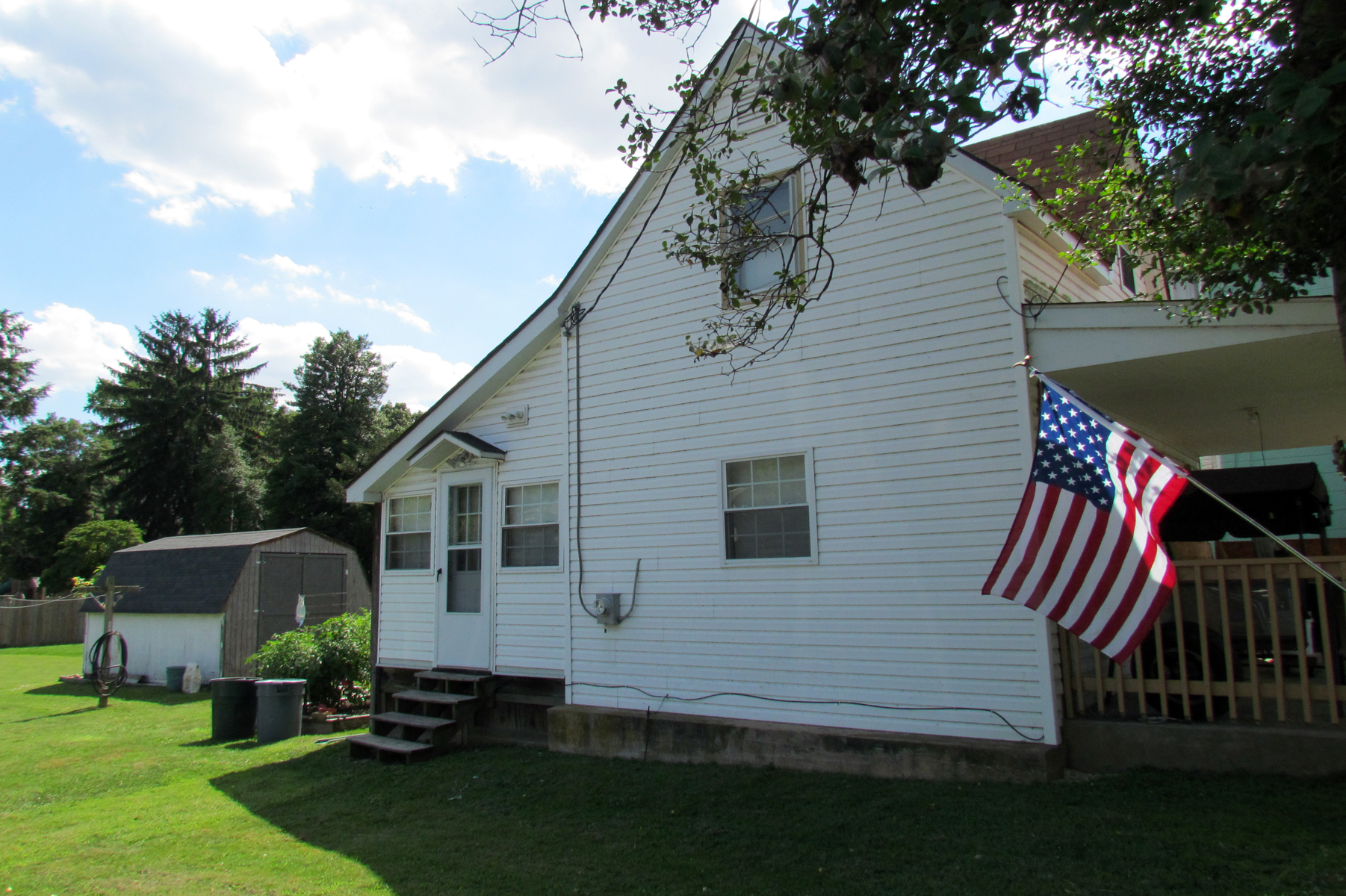 This small house sits on the southwest corner of Erie and Juniata Streets but thought by some to have formerly been an early railroad depot elsewhere. The first people currently known to have owned this house were Ellen Barnes Treadway (1830-1906 and daughter of Aquila Treadway), Sarah Barnes Treadway (1832-1901 and widow of Aquila Treadway), and Jacob J. Michael (1816-1892) who together sold this house to Emanuel Ansalvish (1843-1918) and his wife, Mary, in 1889.