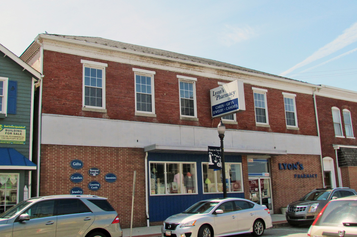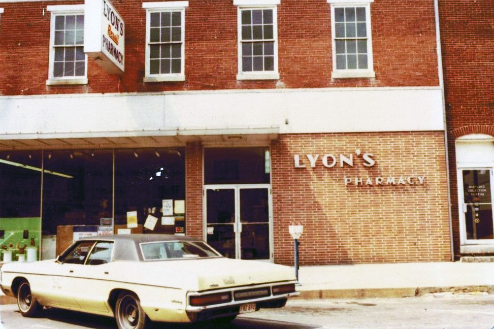 In 1963, G. Taylor “Tad” Lyon (1896-1983), whose family had owned this building and the adjoining one for decades, had Levy’s Department Store vacate this so he could move Lyon’s Pharmacy from next door (330 St. John Street) into this larger space. James H. Lyon (1924-2004) took over Lyon’s Pharmacy from his father and continued its legacy. A graduate of West Nottingham Academy in Colora, Corporal James H. Lyon was awarded a Bronze Star for his part in the capture of Iwo Jima February 20, 1945. He lived at 827 South Washington Street with his wife, Helen, and was the last Lyon owner of Lyon’s Pharmacy.