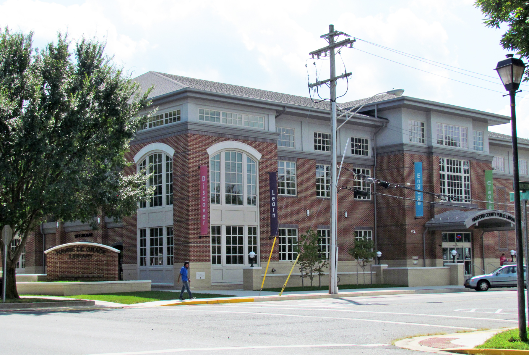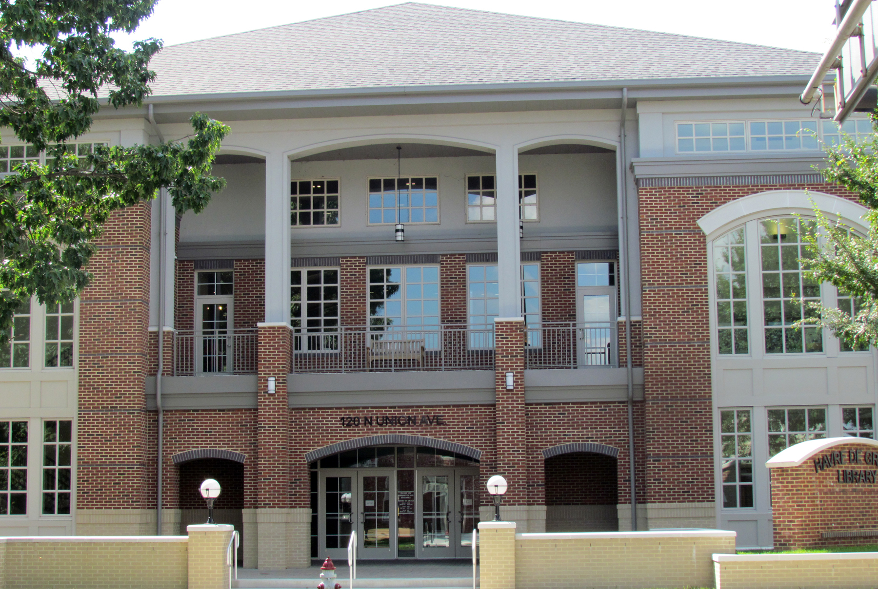 Two homes that used to exist on this corner of North Union and Congress Avenues were demolished (see #116-118 and #126 North Union Avenue). One was to make room for a rectory for St. John’s Church and the second to make room for the new 1987 Havre de Grace Library. The 8,520 square foot brick library building (designed by Frederick Ward Associates, Inc.) served the community well but local population increases outgrew the library quickly.