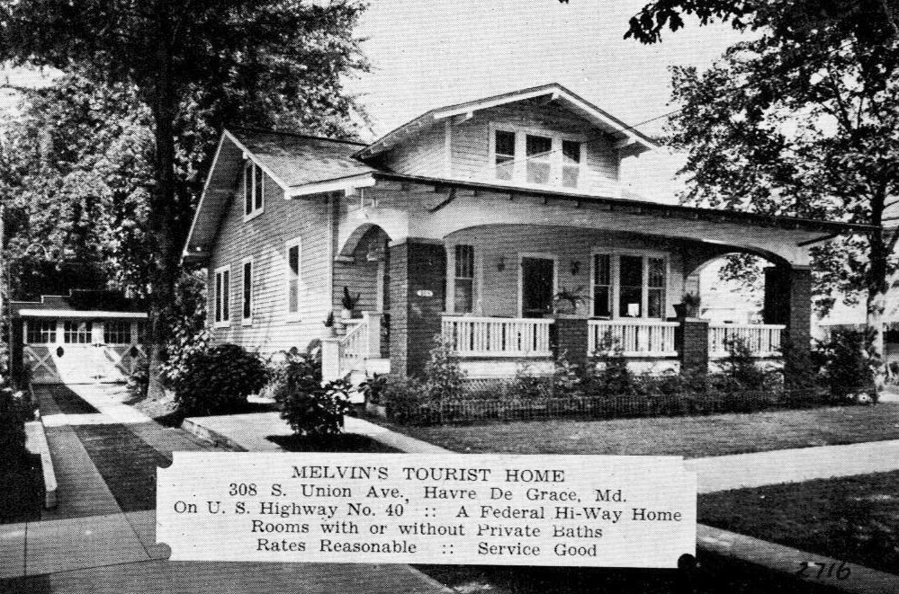 There are several houses in Havre de Grace that were built with the use of Sears Roebuck Model Home Kits and some that look very similar to Melvin’s Tourist Home. The owner would select a model from a Sears mail order catalog and after the order was placed two boxcars containing around 25 tons of materials, more than 30,000 parts, 750 lbs of nails, along with a 75-page instruction book were shipped directly to the purchaser and would arrive at a nearby train depot. The pre-cut lumber and instructions meant that only an “elementary understanding of construction techniques” was needed to erect the house. The 370 different designs were only offered in Sears mail order catalogs between 1908 and 1940. Sears houses built after 1916 have stamped lumber elements that can be found in attics or basements. To know for certain that this home was a kit home would require such investigation.