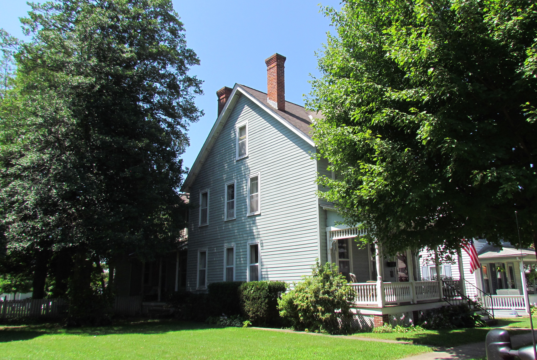 In March 1948, Harvey Thompson sold the property to Mary Elva McVey Thompson and Grace E. Hosier (d. 1995). Mary was the widow of Harvey’s brother, George R. Thompson, and Grace was Mary and George’s daughter. Mary had grown up on this same street—she was one of the daughters of Joseph and Josephine McVey of 849 Ontario Street. When Mary Thompson died in August 1961, she was survived by her four children—Grace Hosier (d. 1995), Edna Quereau (d. 1980), Eleanor Meyer (d. 1980), and Joseph M. Thompson (d. 1963).