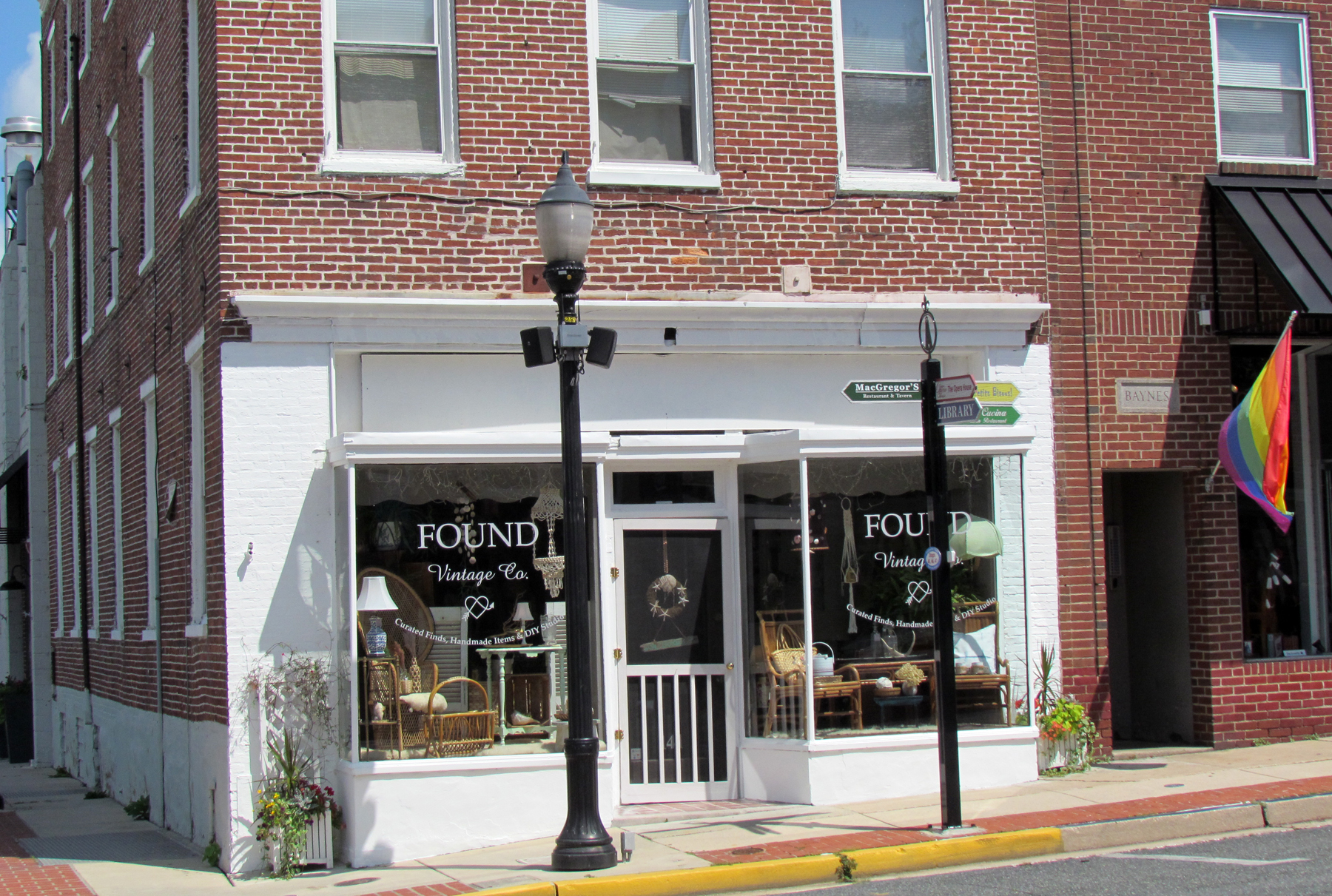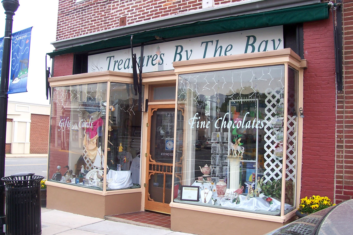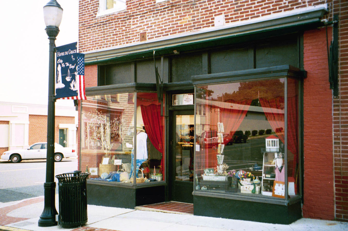 During 1983-1992, this was the location of Riverside Antiques, run by Pat Chaplin. They sold a variety of antique furniture, glassware and china. Another store, Midnight Sun, was operated here by Stefania Ervin in 1983 which featured Icelandic imports (they later moved to 118 North Washington Street). Sometime after that, George’s Antique Store, the Tattered Barn, Tasteful Touches, Treasures by the Bay (with Sheila Stauffer and Tammy Parrott offering chocolates and candy), and the HdG Sports Store successively moved into the bottom level. However, in 2017, HdG Sports Store vacated and this is now the Found Vintage Store.