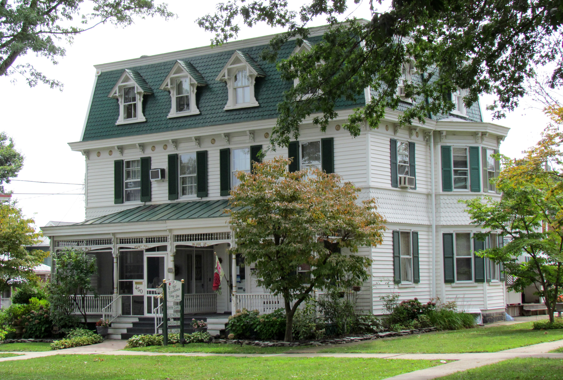 This side of the double home was purchased by Jim and Rosemarie Miller in 1994, who incorporated a small business, known now as Par Excellence, into the home. They furnished the house in Victorian décor and retained the original wood floors. Noteworthy was the spectacular chestnut hand-wrought stair railing and the carved newel posts.